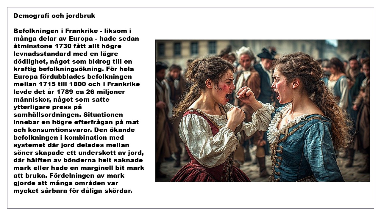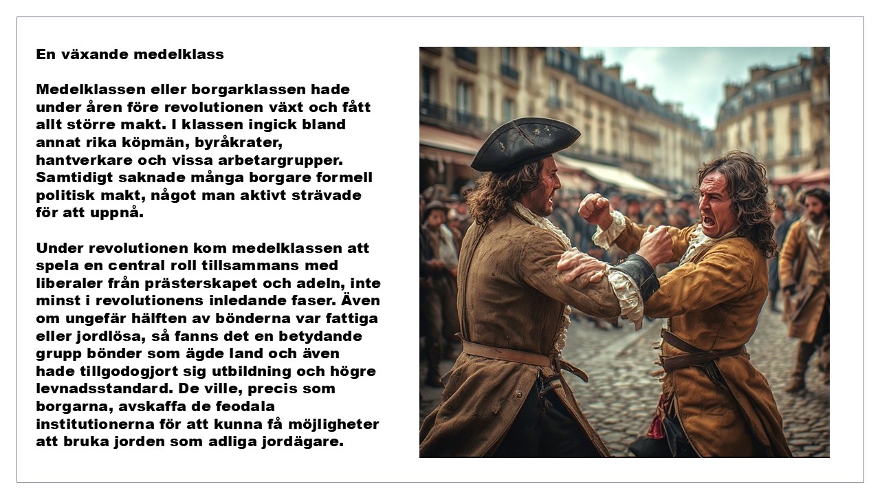 De breda folklagren hade ofta ont om mat samtidigt som den övre delen av adeln levde ett luxuöst liv med hög konsumtion, vilket gjorde att spänningarna mellan klasserna var hög. Adeln var i flera fall undantagna skatt, bland annat jordskatten taille. Den katolska kyrkan, som ägde ca 10% av marken i Frankrike, hade inga skatteplikter alls utan betalade en frivillig avgift till staten. Även om både prästerskapet och adeln hade många privilegier så var det inte en poilitiskt homogen grupp. Så väl bland präster som inom adeln fanns det de som ville ha ett systemskifte, där vissa ville se en konstitutionell monarki och vissa som till och med förordade en republik.
