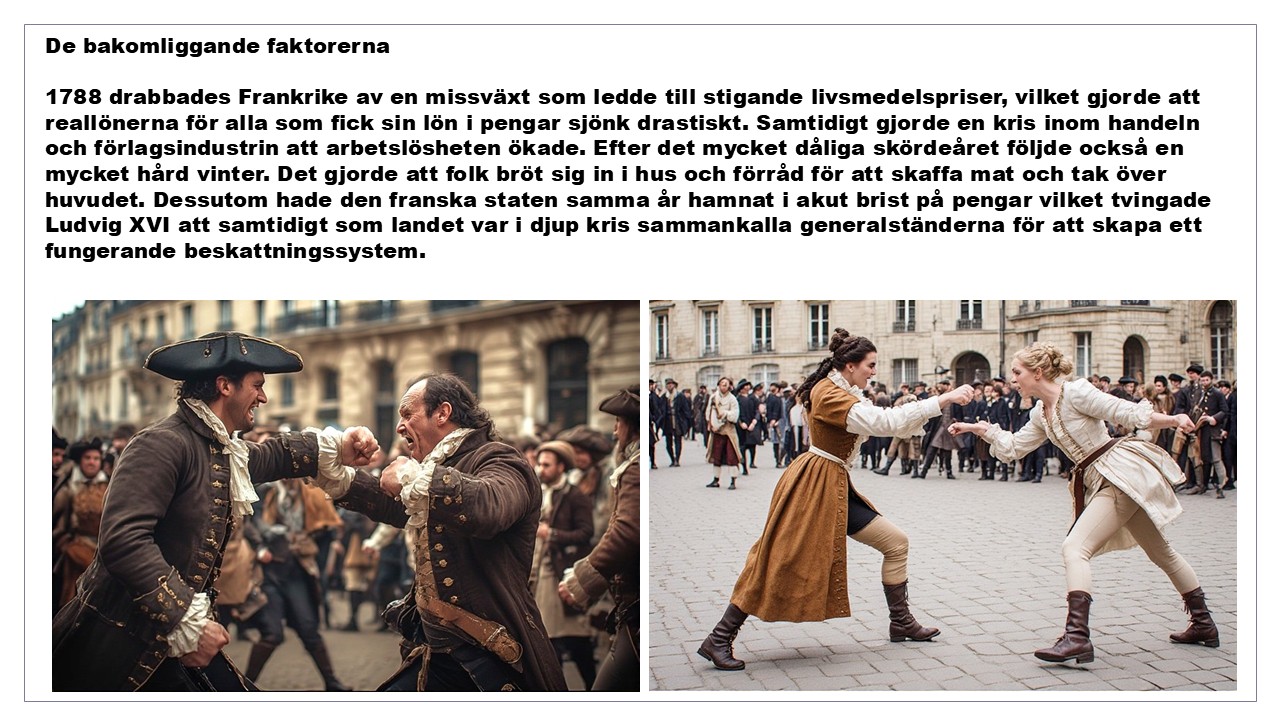 Revolutionen orsakades av flera händelser och processer. Under 1700-talet hade upplysningsfilosofer som Voltaire och Rousseau lyft fram nya tankar om hur en stat kunde organiseras baserat på förnuft. Den ekonomiska och sociala ojämlikheten mellan olika klasser i Frankrike var hög, där en stor del av skatterna betalades av bönder och borgare, medan adel och präster i flera fall var undantagna skatt.