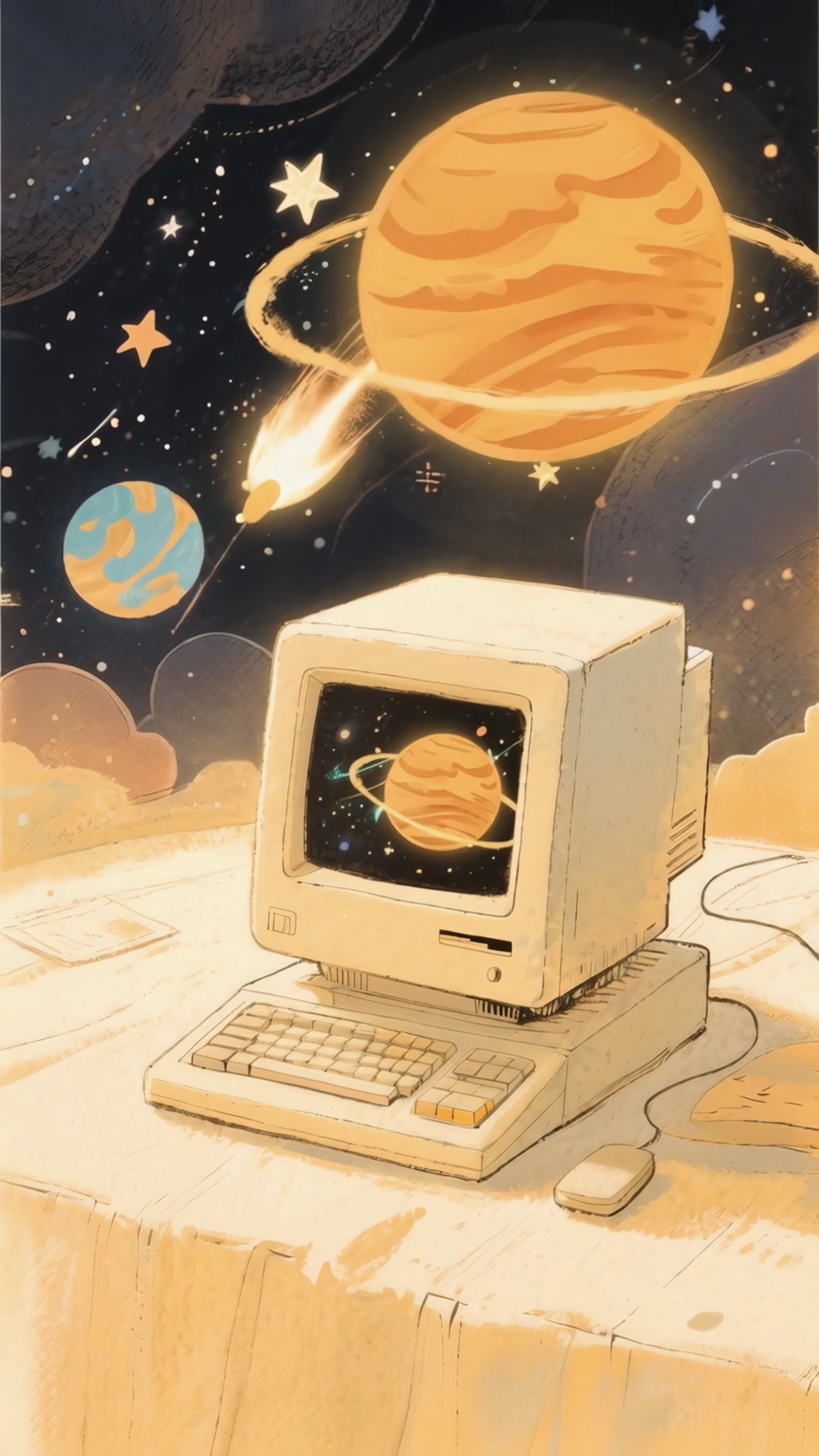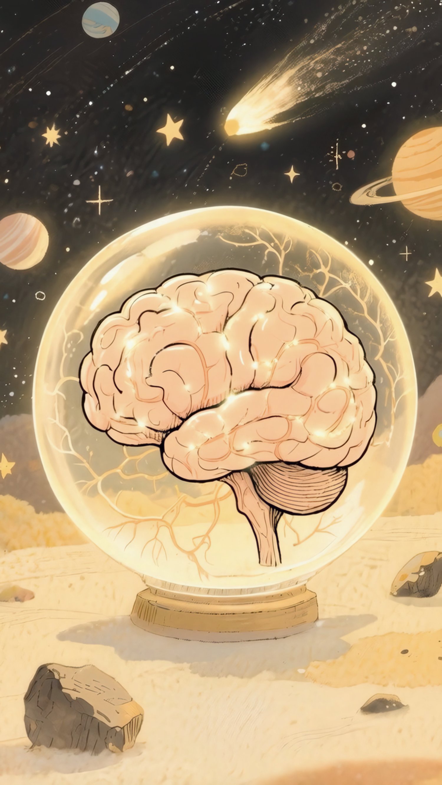 After each of Mira’s questions, the professor’s explanations unfold into a new visual dimension: gentle, AI-generated graphic animations with soft lines and subtle colors, inspired by The Little Prince and Tintin. These inserts transform the dialogue into a philosophical journey through simulation theories, quantum mechanics, wave-function collapse, networks of consciousness, and hypotheses about the holographic nature of the universe.