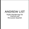 Night Wanderings scored for clarinet solo and percussion ensemble is a musical fantasy about traveling through space. The piece tells the story of a solo space traveler who maneuvers through the wonders and perils of deep space. The traveler has many amazing experiences ranging from floating past beautiful planets and their moons to maneuvering through a dangerous field of meteors. There is a gradual tempo accelerando though out the work that ends with the space ship entering Warp 5 and beyond. Night Wanderings is written for the virtuoso clarinetist, Kliment Krylovskiy and the UCF Percussion Ensemble.