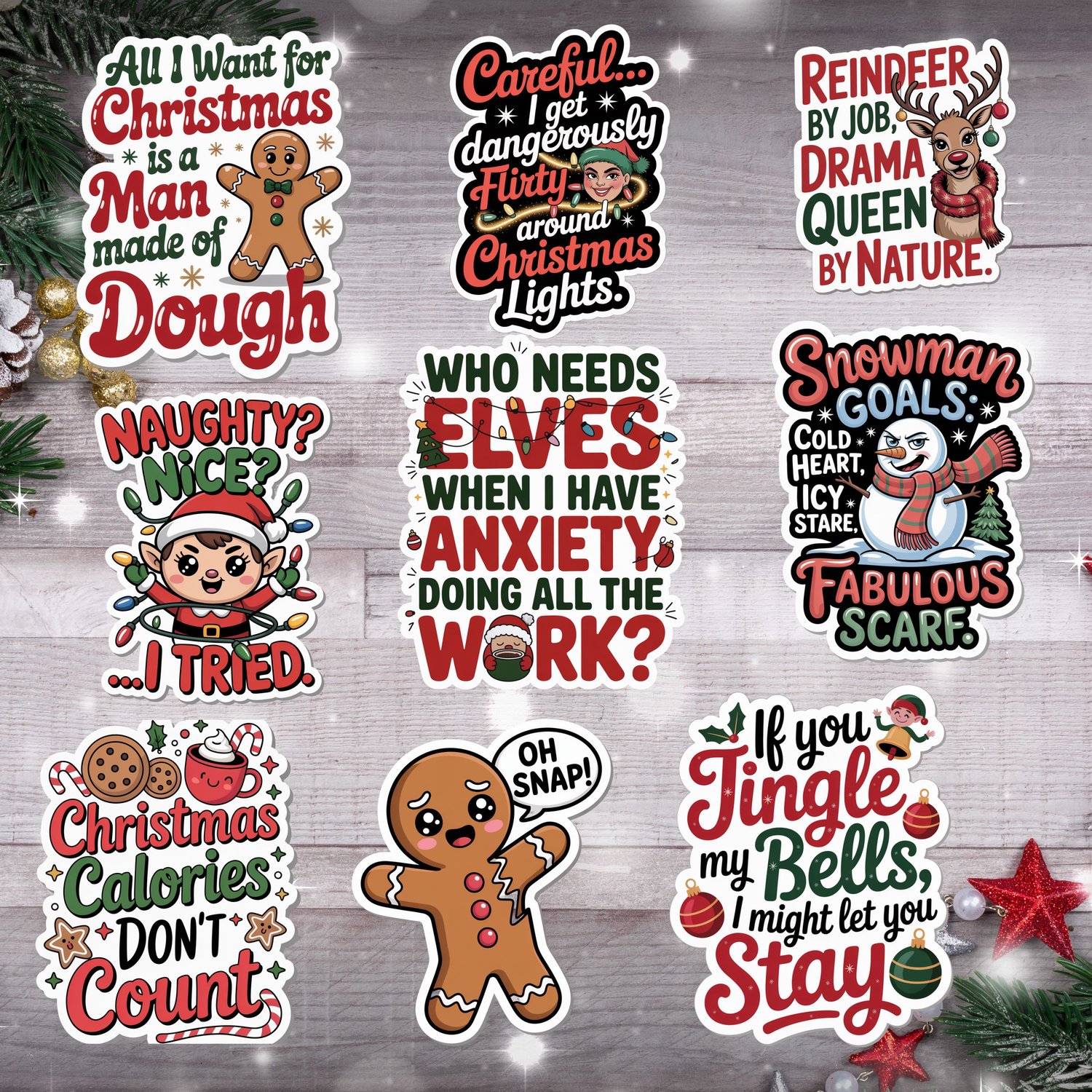 Oh Snap! Funny & Snarky Christmas Sticker Bundle (9 Stickers) DIGITAL DOWNLOAD