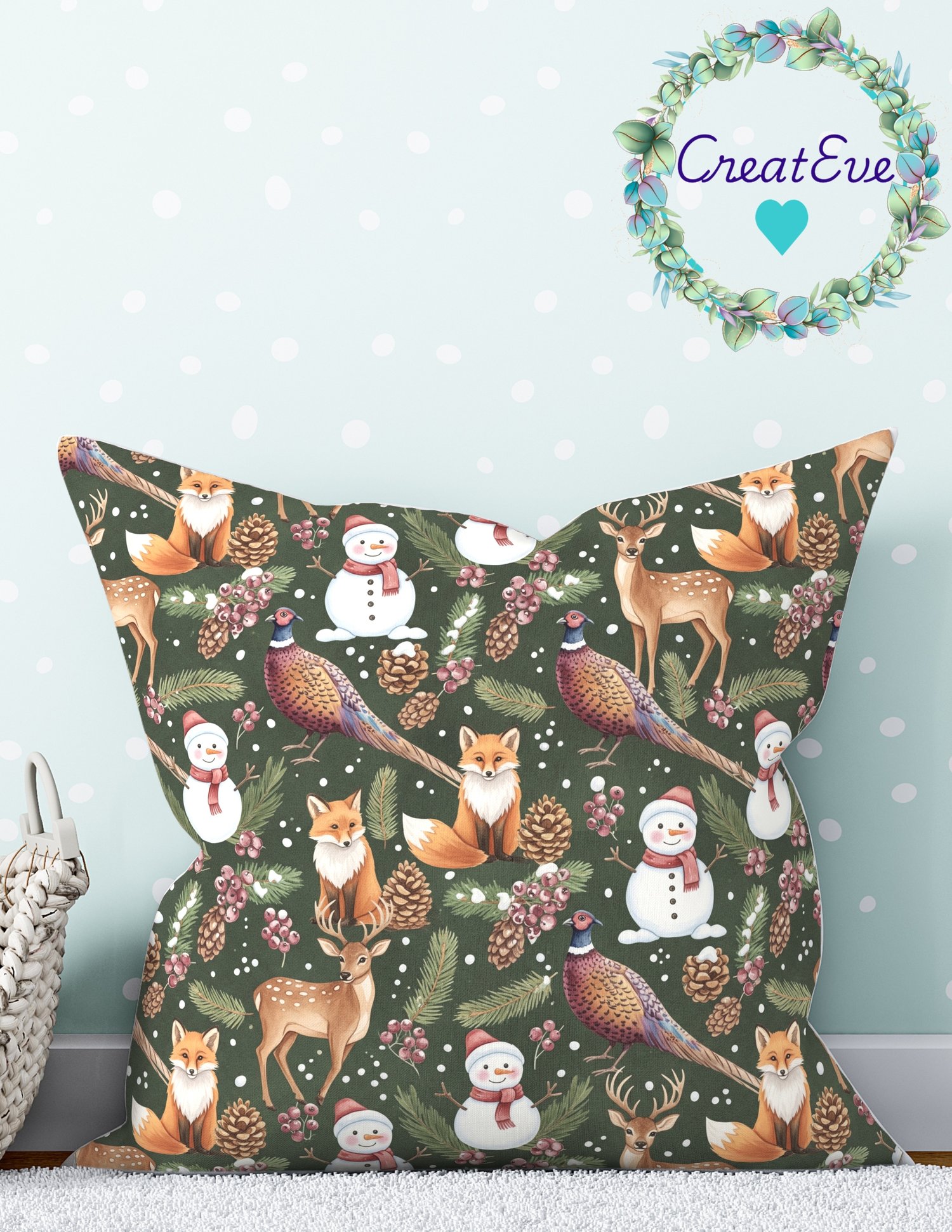 Winter Woodland Holiday Seamless Pattern 300dpi, 12"x12" PNG