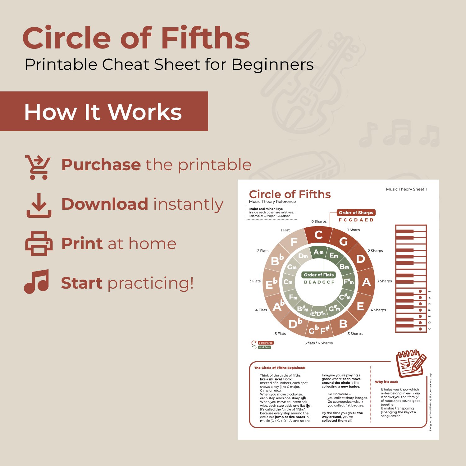 Circle of Fifths Chart – Printable Music Theory Reference | Key Signatures Guide | Music Student Study Sheet | Piano & Instrument Theory | Instant Download