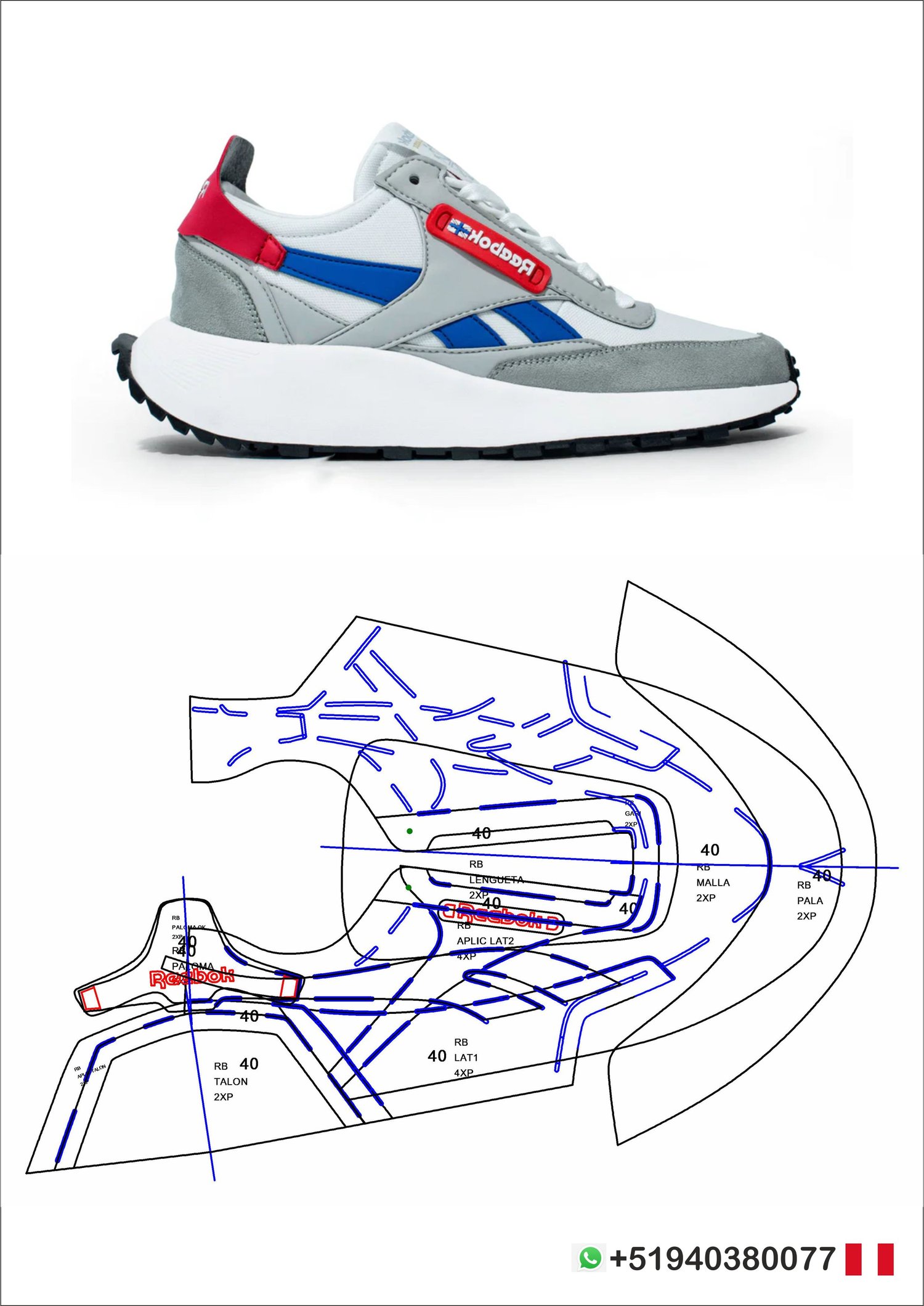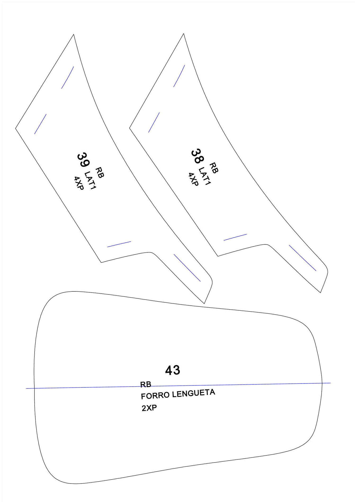 patrón de zapatilla urbana en hoja A4 PDF talla escaladas del 38 al 43. listo para imprimir y hacer tu propia producción.