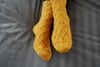 Yarn: Approximately 100 g of fingering weight sock yarn; actual yarn usage depends on foot size