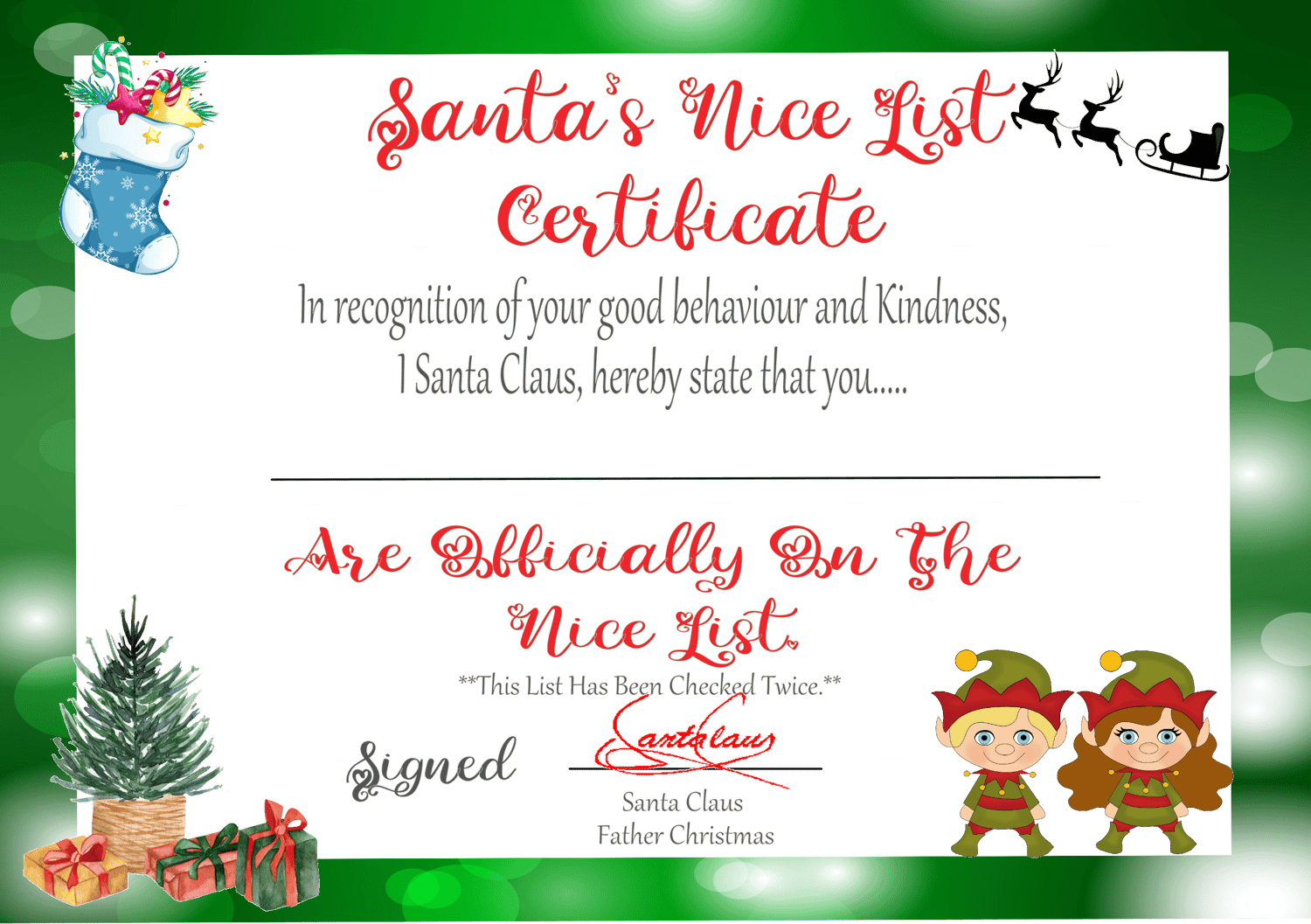 Santa`s Nice list certificate