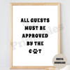 All Guests Must Be Approved By The Cat Paw Print Poster Trendy White Black Typography Text Decor Printable Wall Art Digital Download JPEG