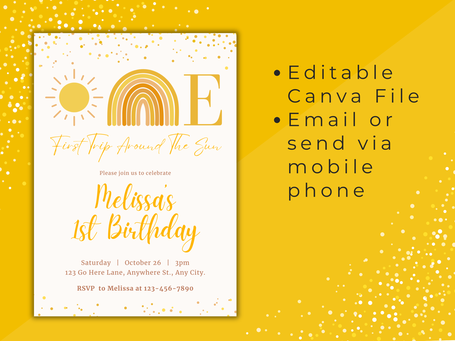 Boho First Trip Around The Sun Birthday Invitation Printable