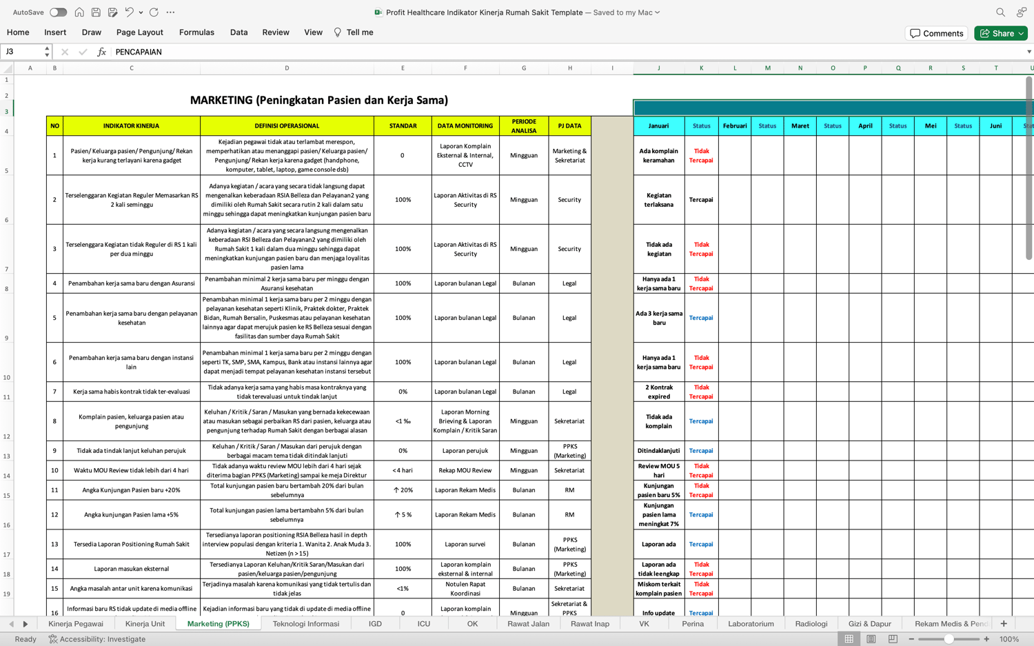 Indikator Kinerja Seluruh Unit Rumah Sakit mulai dari Marketing, Pelayanan Medis, Keperawatan, Keuangan, Diklat hingga Security yang dilengkapi dengan :