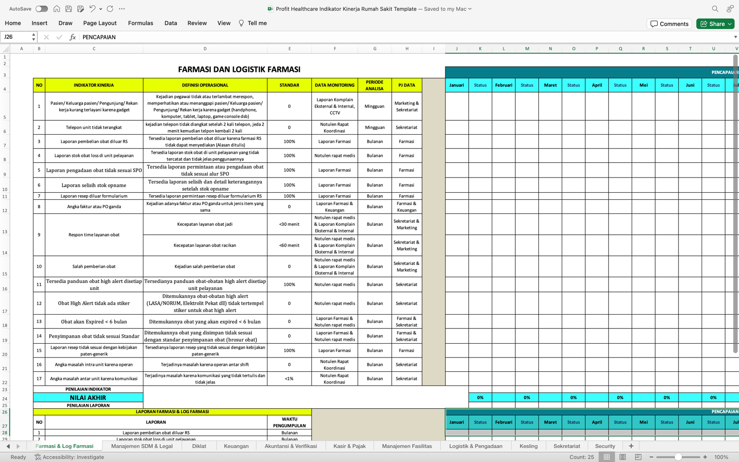 Excel template ini dapat langsung digunakan sebagai format Google Sheet agar dapat langsung digunakan oleh seluruh unit di Rumah Sakit.