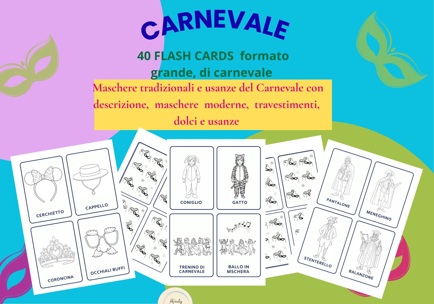 le flash cards sono pensate soprattutto per stimolare la conversazione sulla festa del carnevale, parlando dei gusti personali o raccontando le maschere tradizionali.