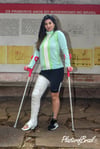 Vivian on her first day after the plaster dries, she has to do work around her house as much for the office. Vivi doesn't miss the chance to take some pictures and send them to her boss explaining that she broke her leg.