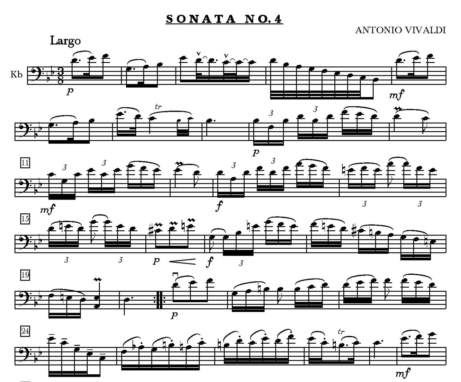 Transkription einer 4-sätzigen Sonate des Barock-Komponisten für den Kontrabass. Die Anforderungen liegen insbesondere bei technischer Gewandtheit und musikalischer Tonbildung.