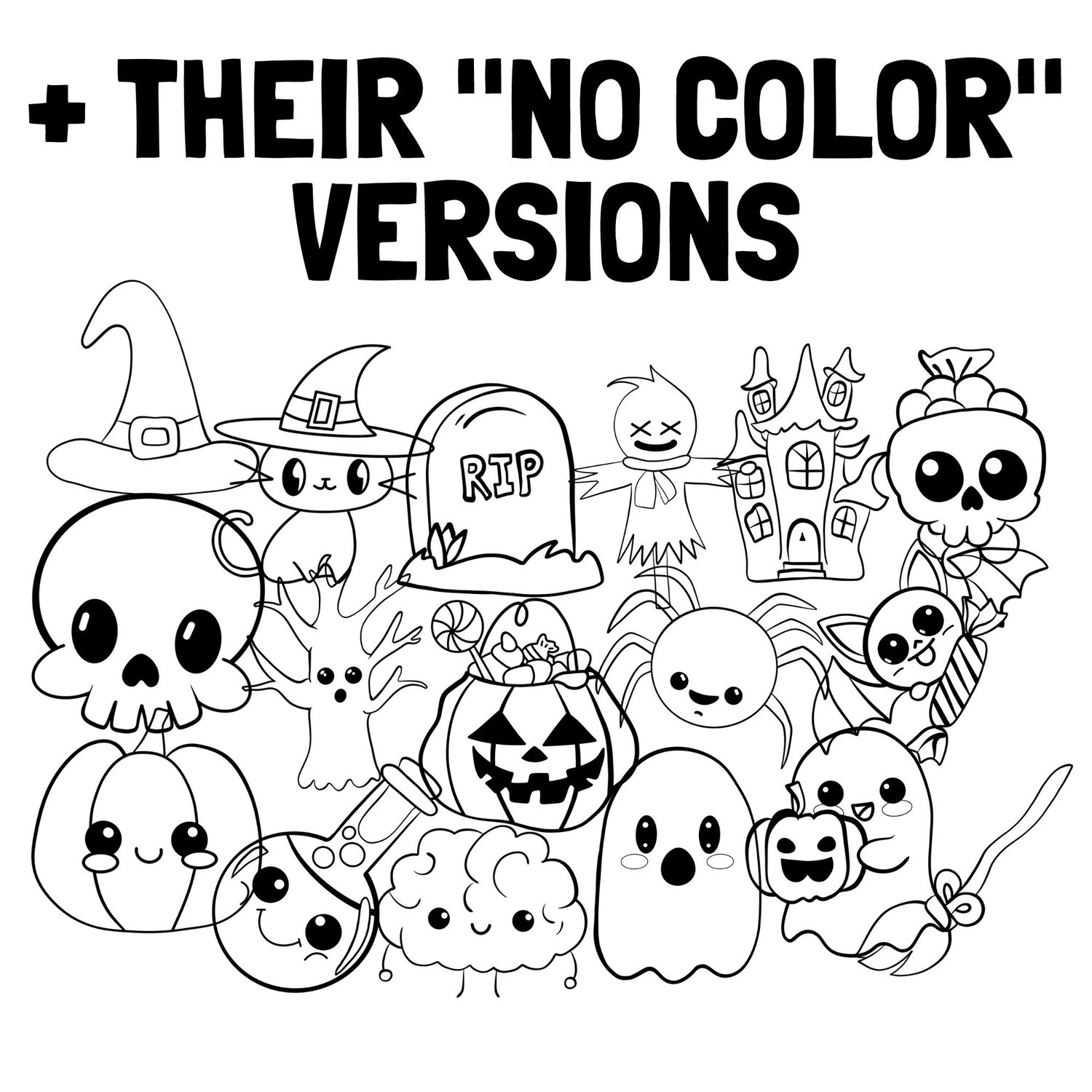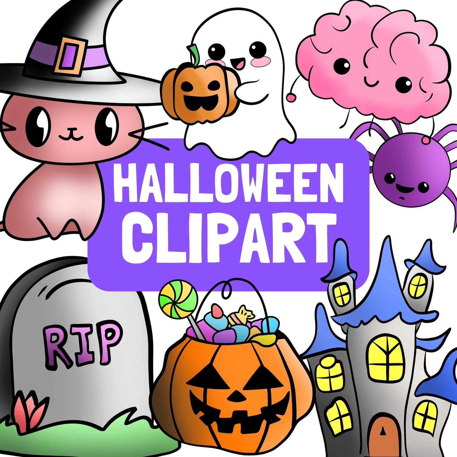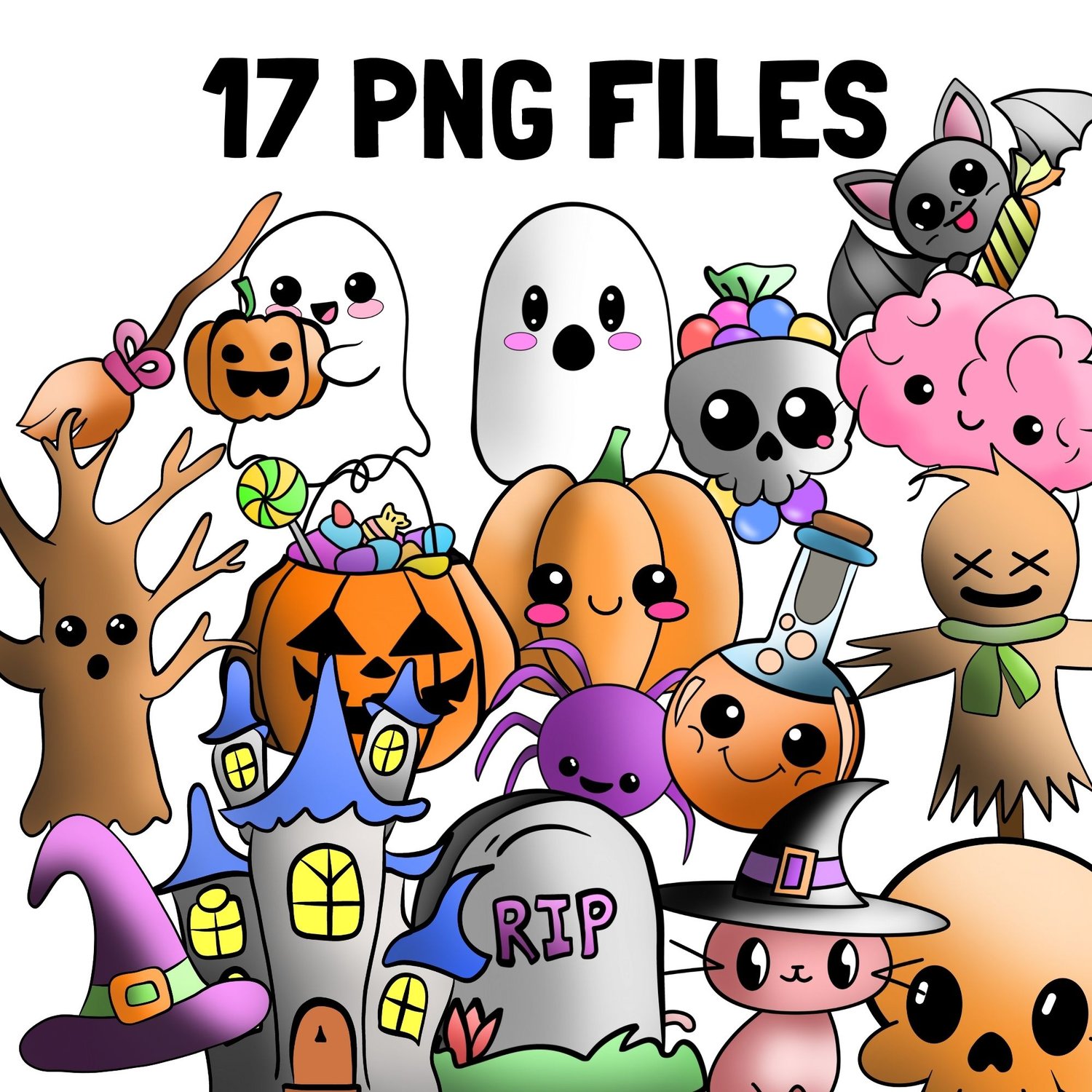 17 PNG files (with no background) of Halloween kawaii illustrations