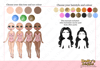 four different skin tones, three eye colours and 15 hair colours in two hairstyles)