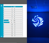 * Verifique, con un Fixture de pruebas (click), que coincidan estos canales: 1 Dimmer, 2 Strobo, 8 en el valor 65 = Color Azul, 9 en el valor 75 = Gobo de la tercer foto.