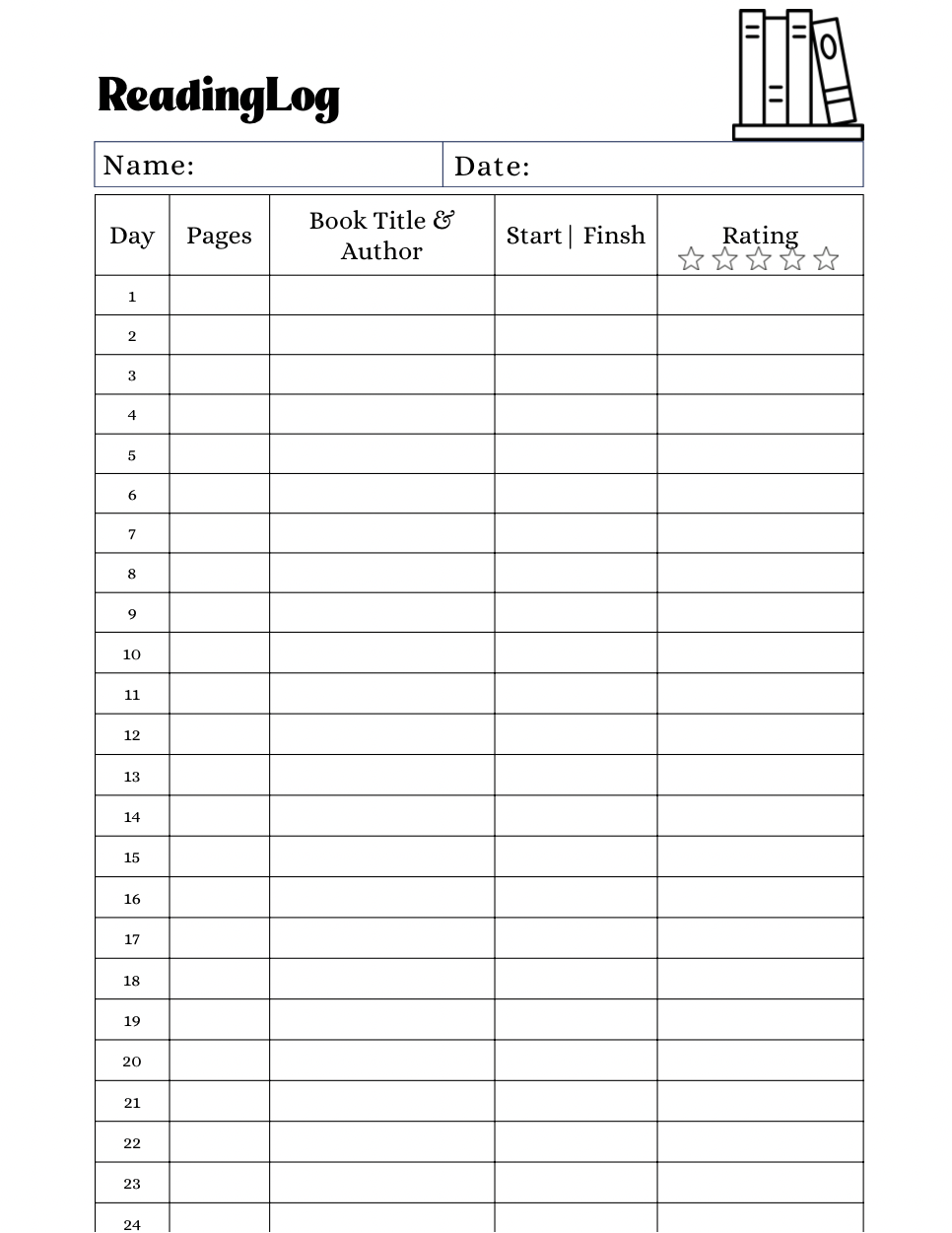 - Reading Log (Index) – keep a full list of all the books you’ve read.