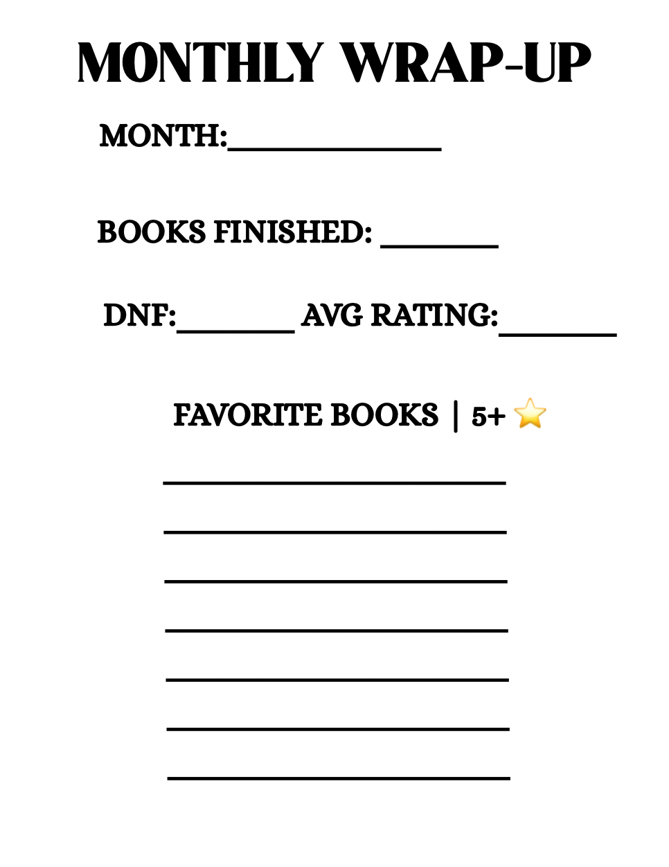 - Monthly Wrap-Up – reflect on each month’s reading, highlight favorites, and analyze genres read.