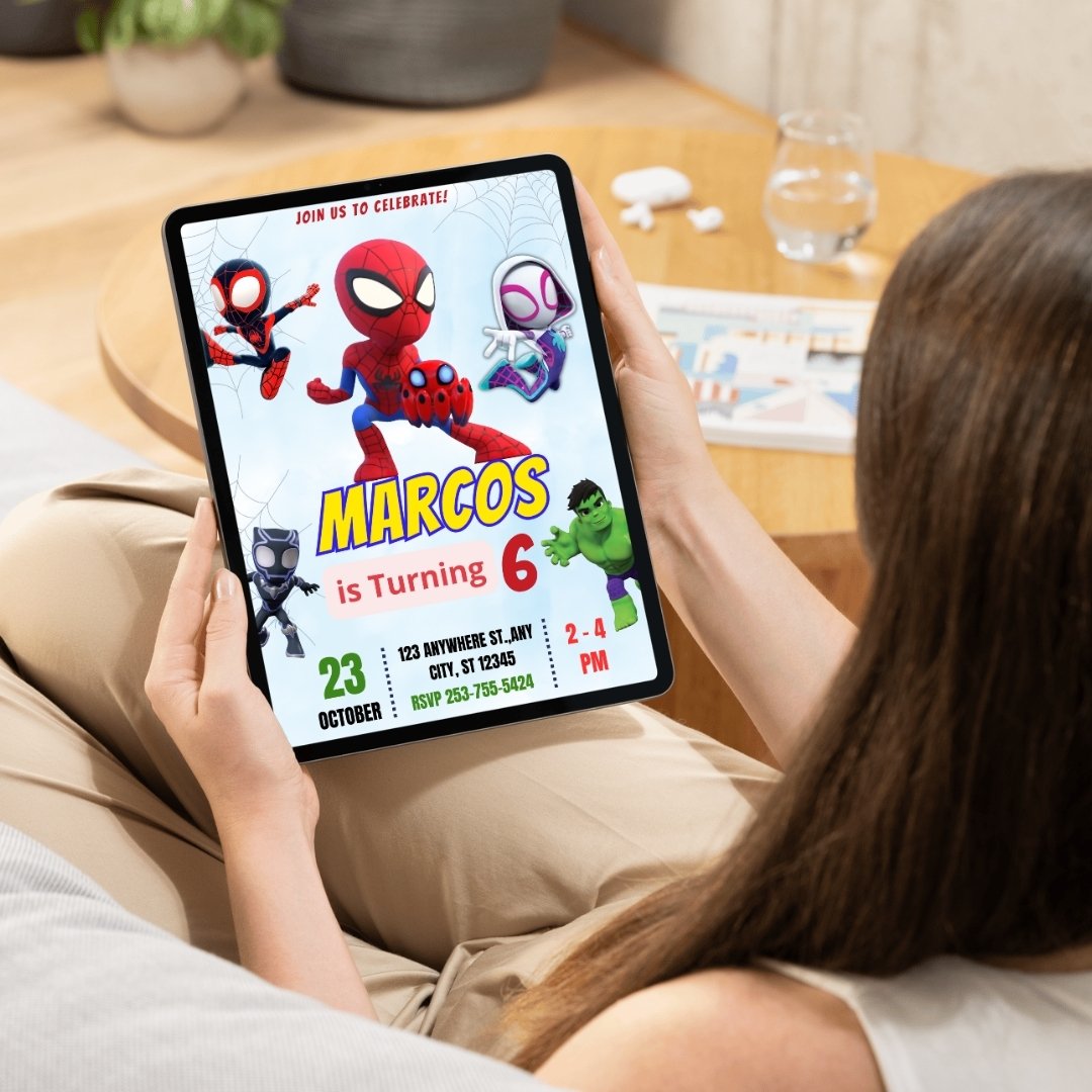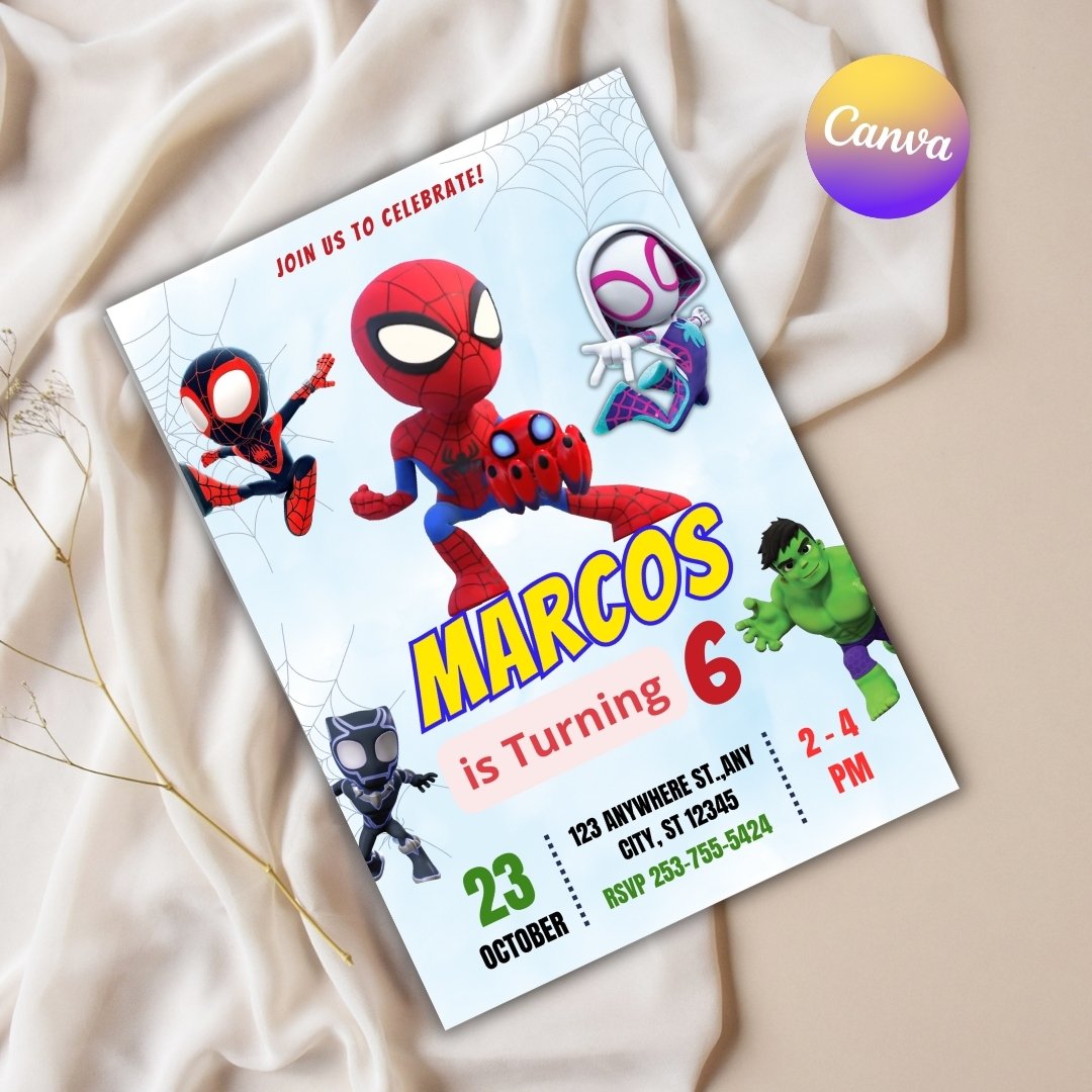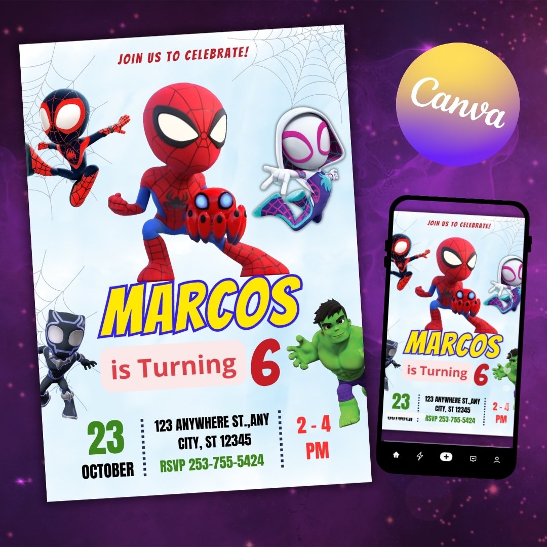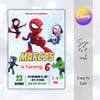 Make your little hero’s birthday unforgettable with this Spidey and His Amazing Friends birthday invitation! 🕷️
