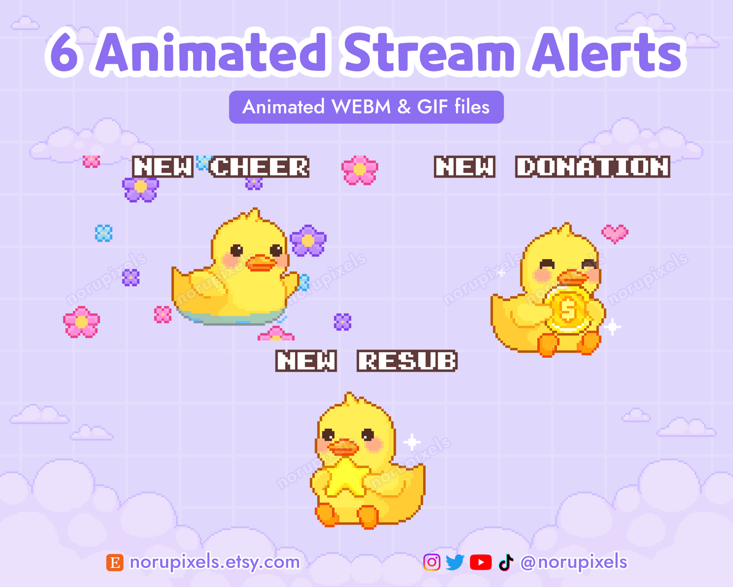 6 Animated Duck Stream Alerts Pack