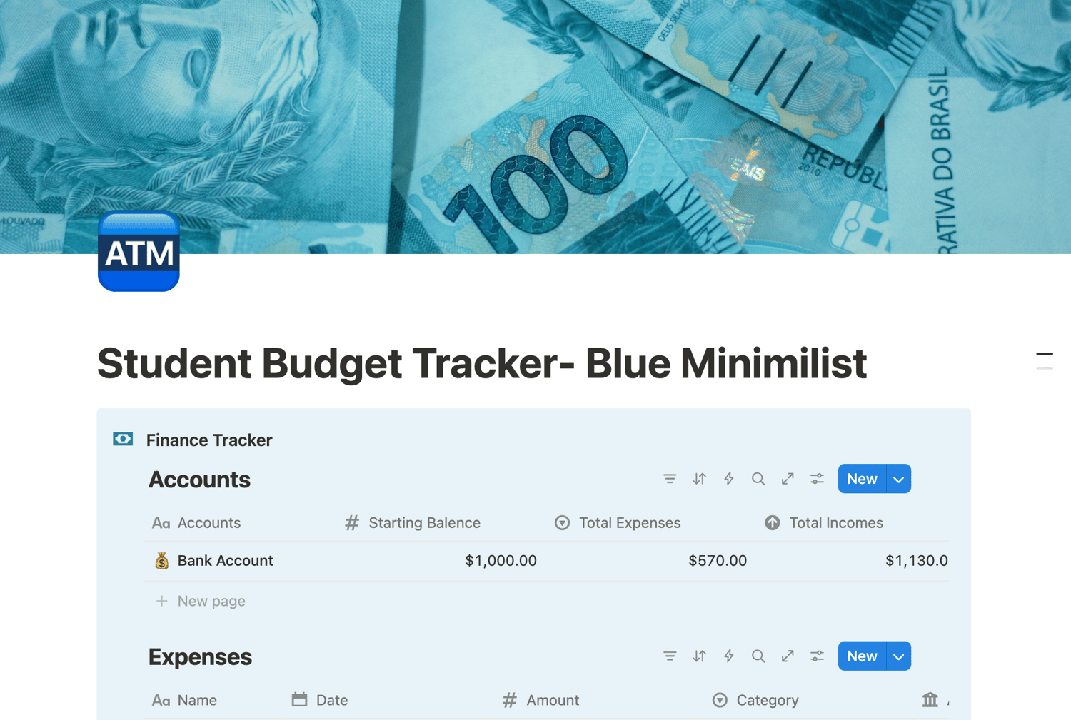 Built with a calming minimalist blue aesthetic, this template keeps your finances organised without the clutter. Ideal for students, casual workers, or anyone wanting a simple system to manage money in Notion.
