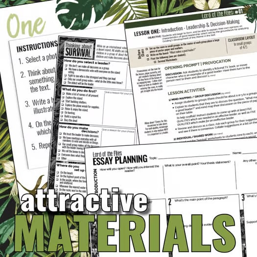- Lessons 3–18 – Deep dives into each chapter, with activities exploring key events, symbols, and character development (from the first meeting of Ralph and Piggy to the shocking climax and resolution)