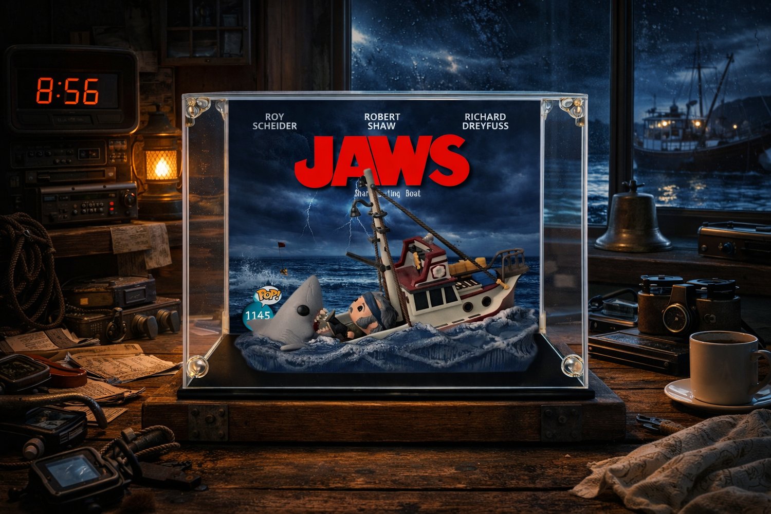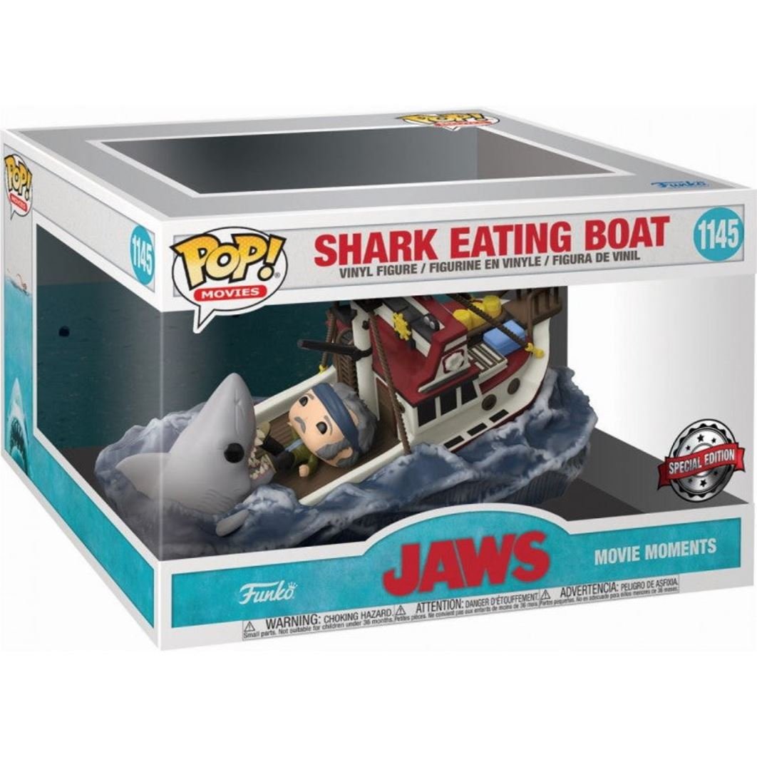 Enhance your collectible with a high-resolution 25 cm (width) x 20 cm (height) display poster, specially designed to fit the Funko Pop® Movie Moments #1145 – Shark Eating Boat inside a standard 25x20x20 cm display case.