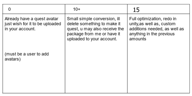 This will be the Payment form, for requested avatar conversions. U will DM me ur request and i will give u a quota, based on what u requested