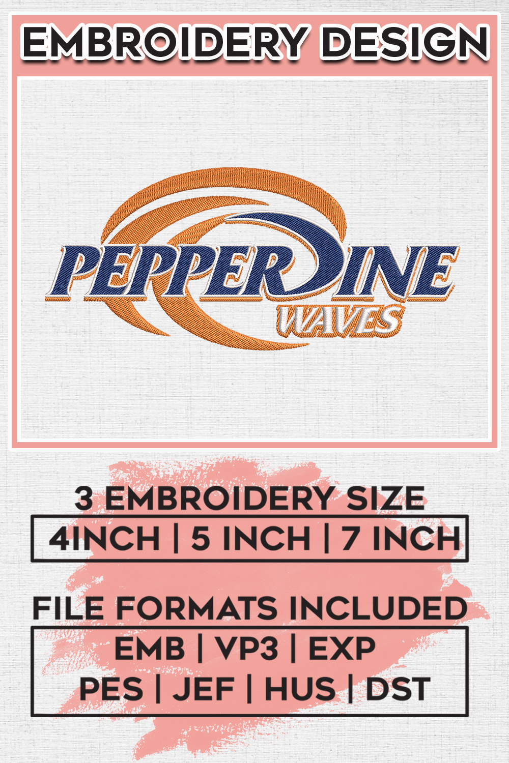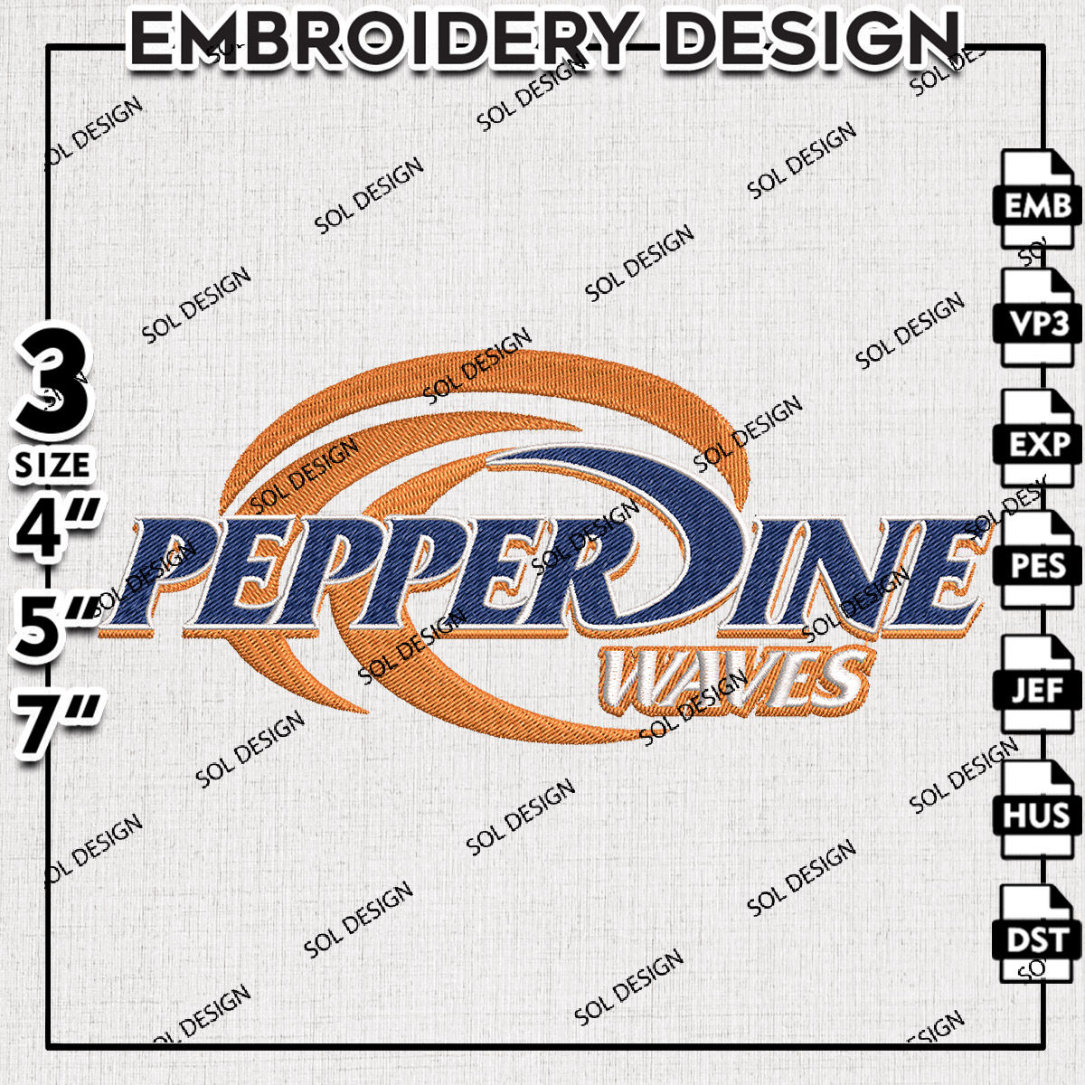 Pepperdine Waves Embroidery Design Files, NCAA Pepperdine Waves Machine Embroidery Designs, NCAA Logo embroidery designs, Ncaa Waves Logo, Digital Download