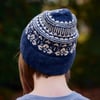 Intended to fit somewhat loosely with 2-2.5" / 5-6.5 cm negative ease in the brim. See more sizing info in the Schematic in the photo gallery.