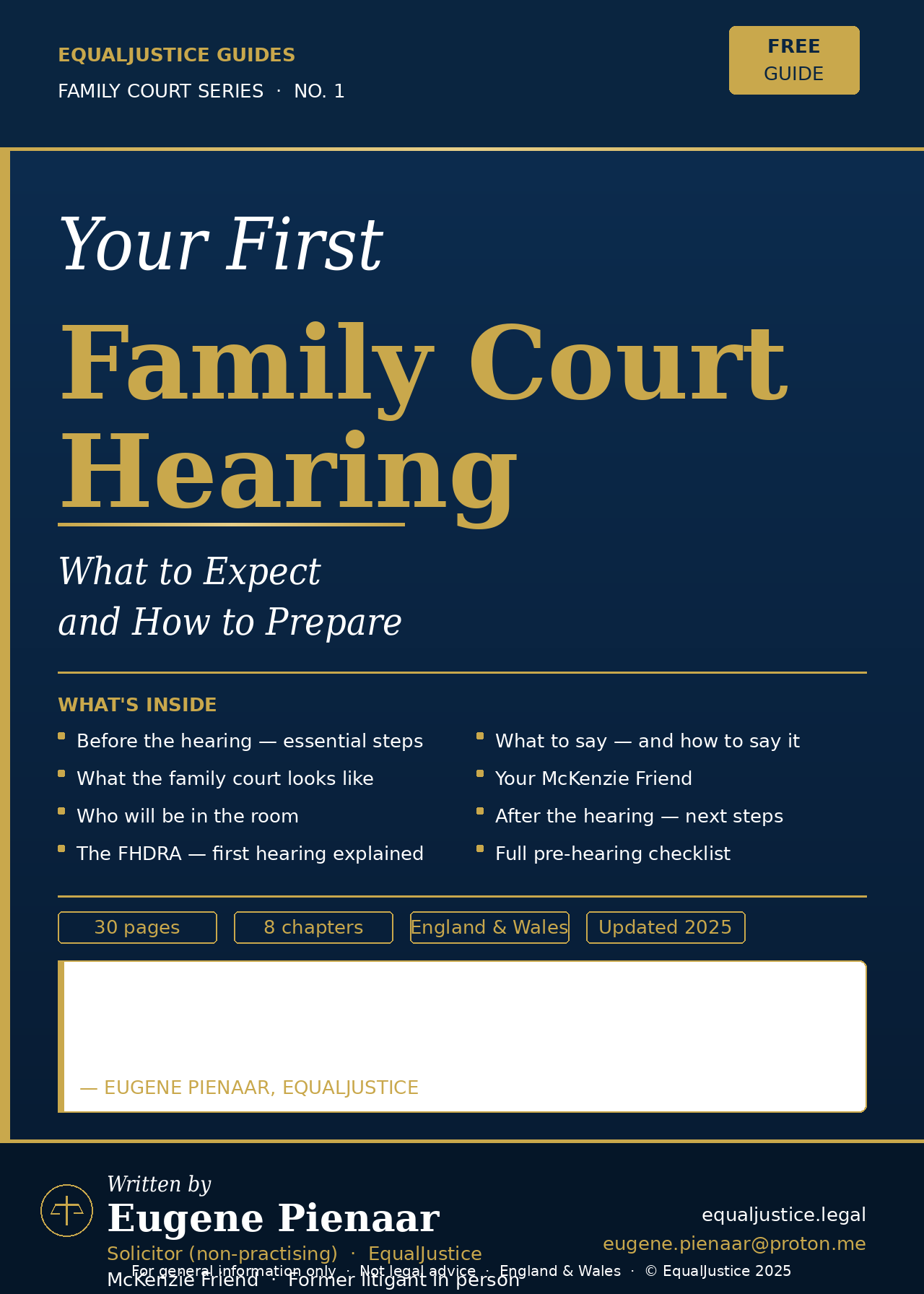 Walking into a family court hearing for the first time is one of the most daunting experiences a person can face. This free guide tells you exactly what to expect — in plain English, with no legal jargon.