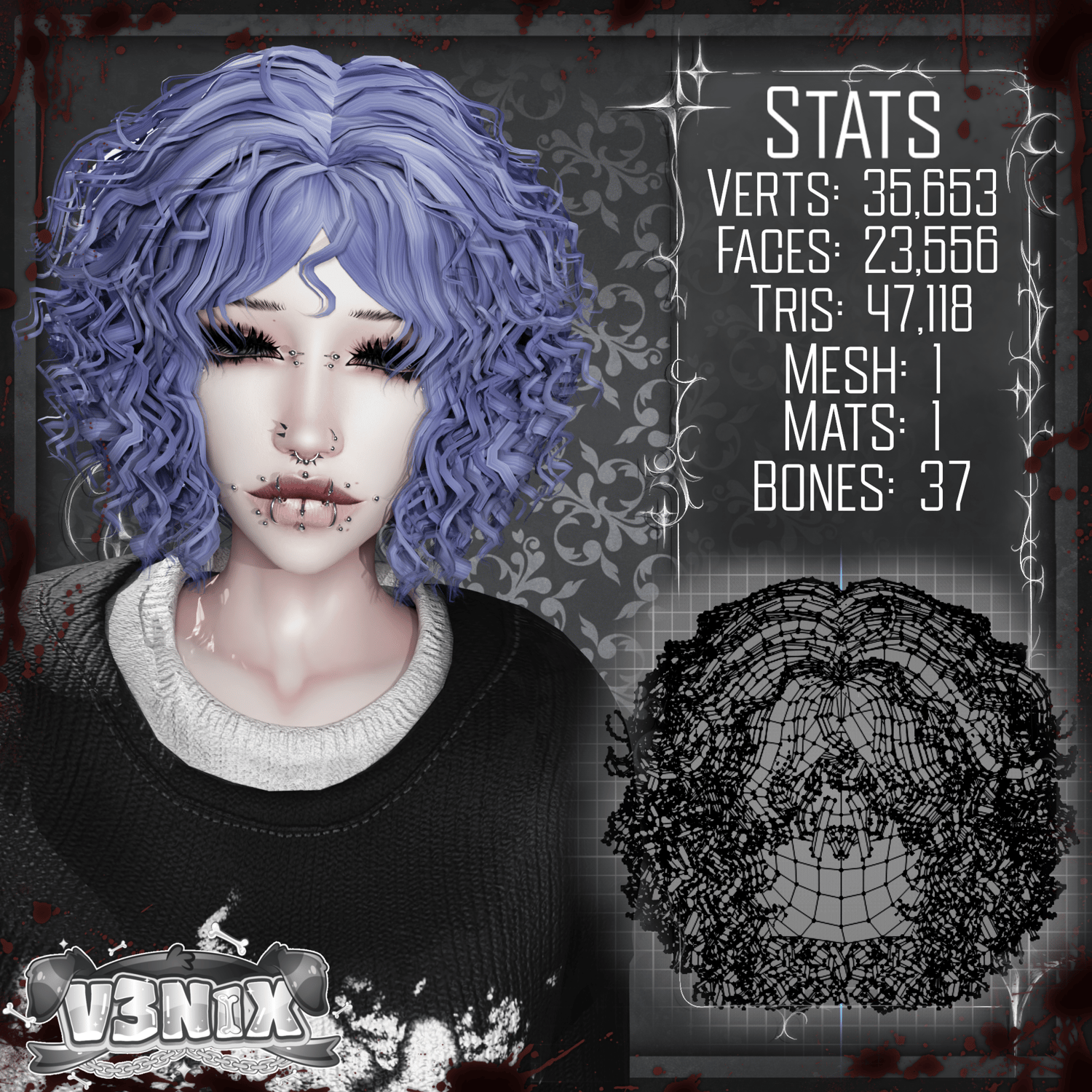 Please use some sort of head cap i recommend Saikuras (i have one its not good so if u would like to remove it from the hair go into edit mode in blender and press L over the headcap! this hair is high poly im sorry i struggled with curly hair but i do think its very cute!