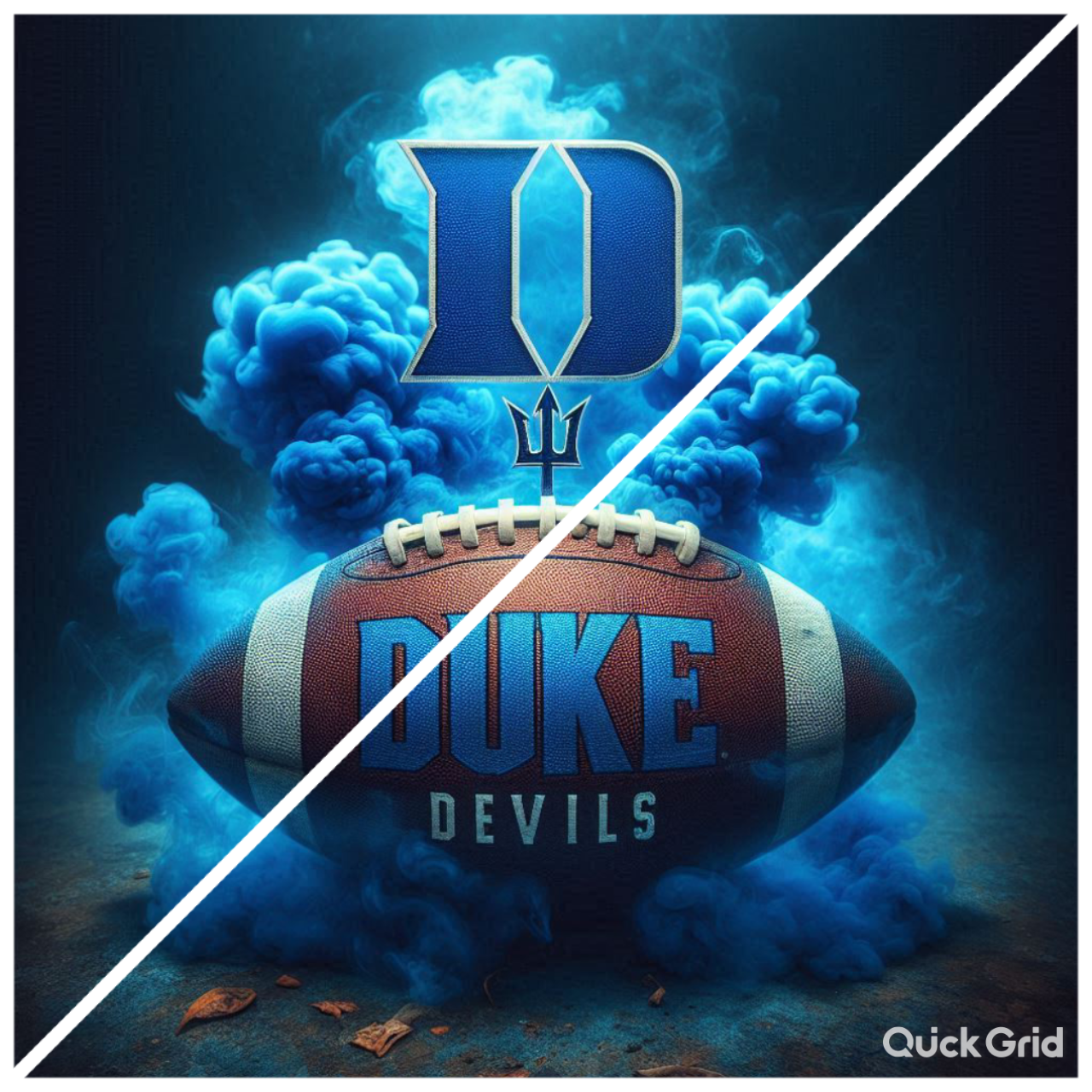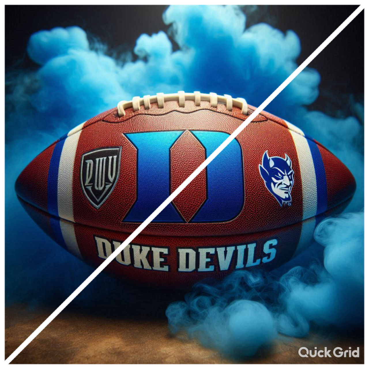 Blue devils football with blue smoke