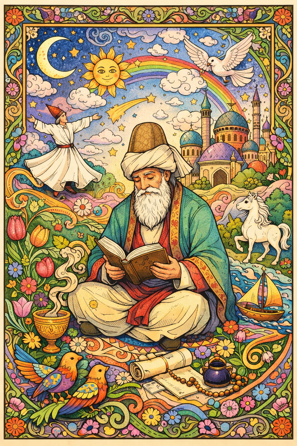 Rumi (Jalaluddin Muhammad Balkh), one of the greatest mystical poets of all time, remains a living spiritual presence to this day. His words are read, recited, sung, and inspired by people of all faiths and cultures. His poetry does not belong to a place or an era; it belongs to the heart.