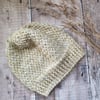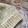 This beautiful beanie pattern reminds me of afternoons in the autumnal sunset. Its unusual brim is simple to create and the wheat-like look of the rise and crown are equally simple but satisfying.