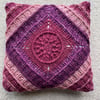 Worked from a single ball of colour changing yarn, the cushion construction transforms a simple pattern repeat into a stunning item. Stitch charts can be found beneath the written pattern.
