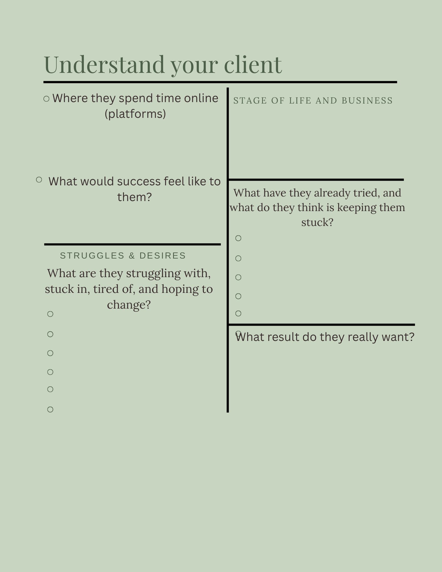 This helps you mine your experience and strengths for a vaiable business idea. Find a business idea, validate it and narrow down on niche and audience
