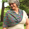 The Variegated Squares Cowl is an asymmetrical cowl that wears and looks like a big shawl. It is worked entirely flat from edge to edge. The cowl begins at the back of the neck at the right edge and ends at the left side of the neck.