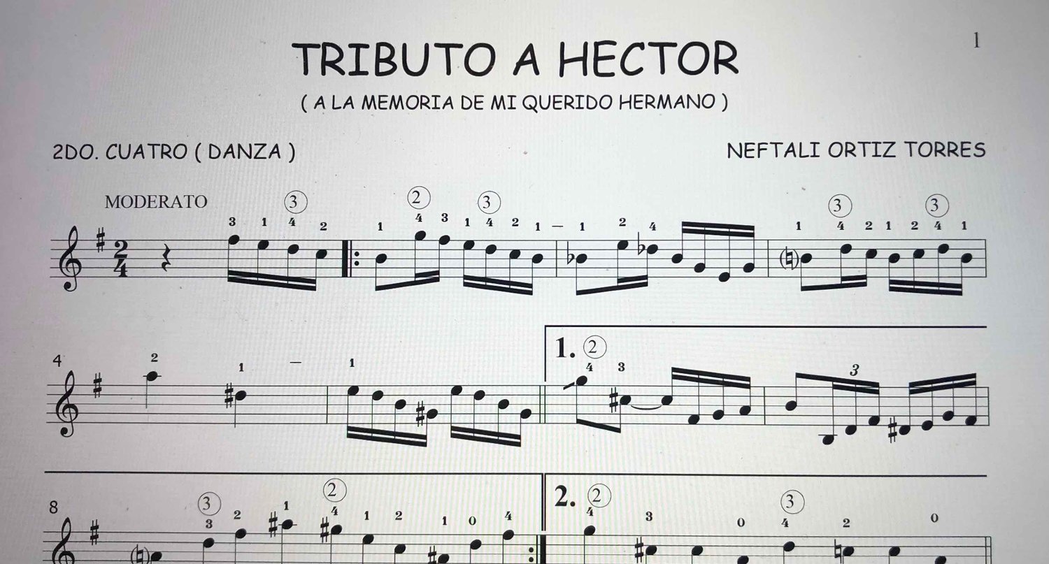 Partitura de 2do Cuatro de la composición de Neftalí Ortiz: Tributo A Héctor.