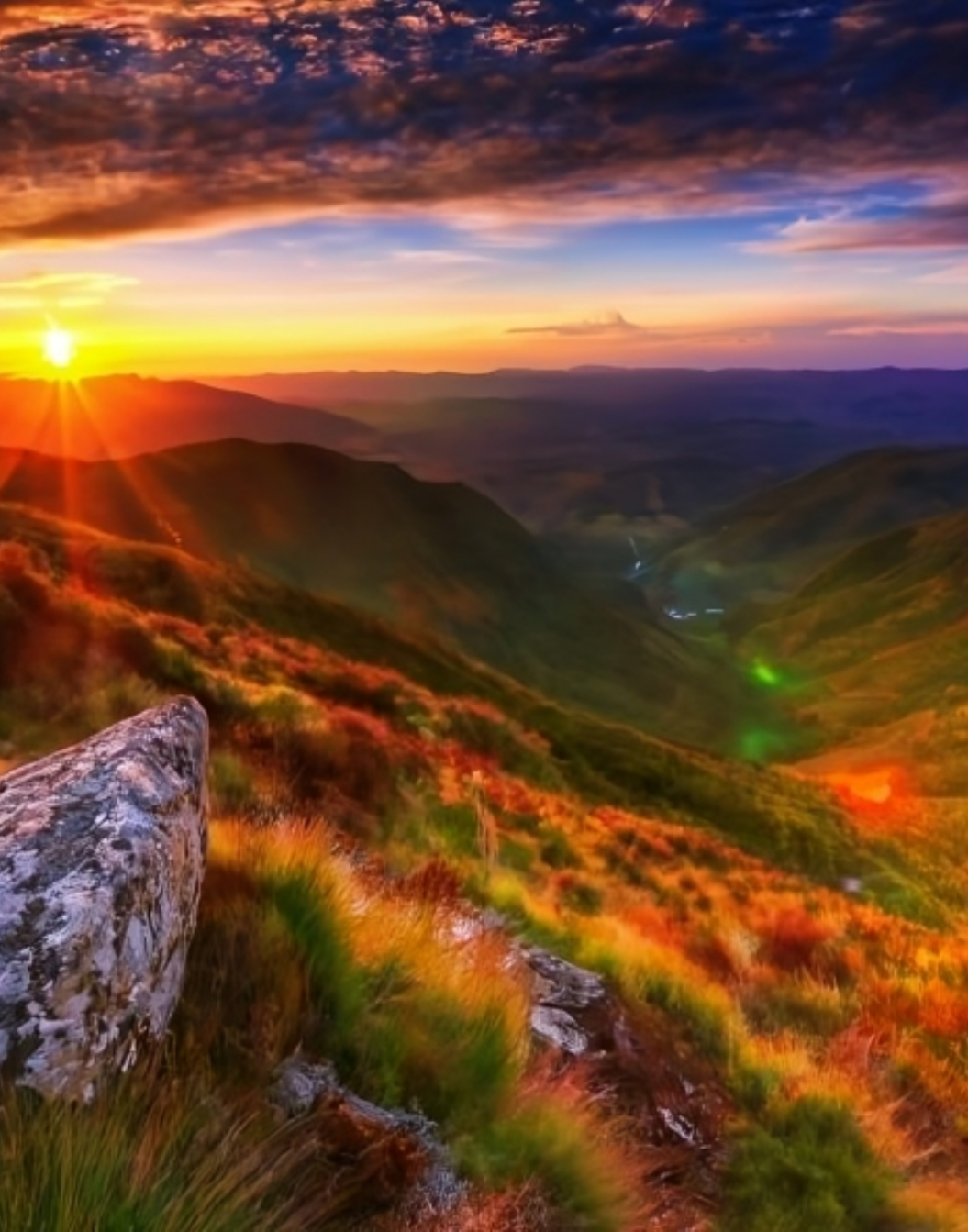 Mountain Landscape, Sunset, Dusk, Mountain Wall Art, Vintage Landscape, Nostalgic Nature, Cool Nature, Rustic natural Landscape, Painting.