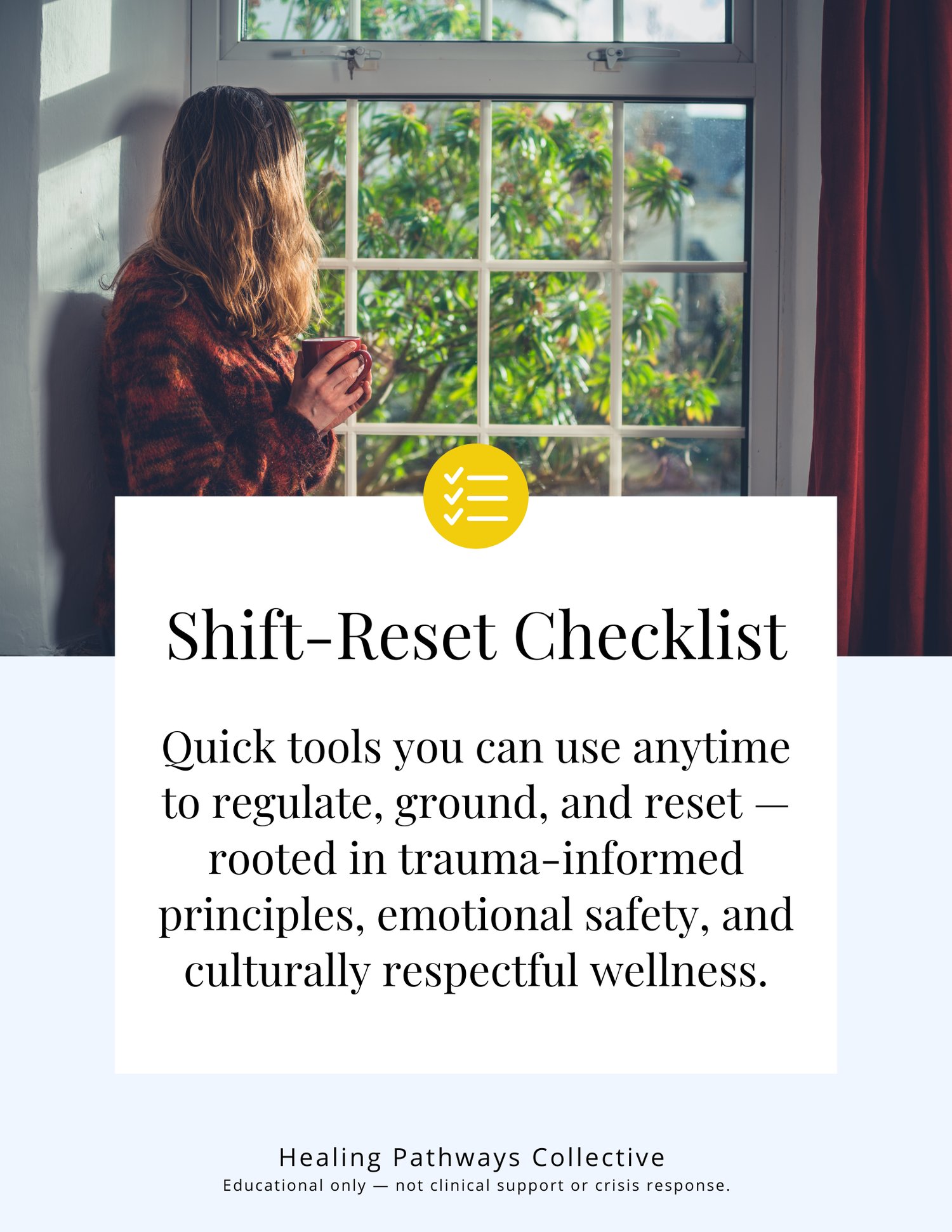Quick tools you can use anytime to regulate, ground, and reset — rooted in trauma‑informed principles, emotional safety, and culturally respectful wellness.