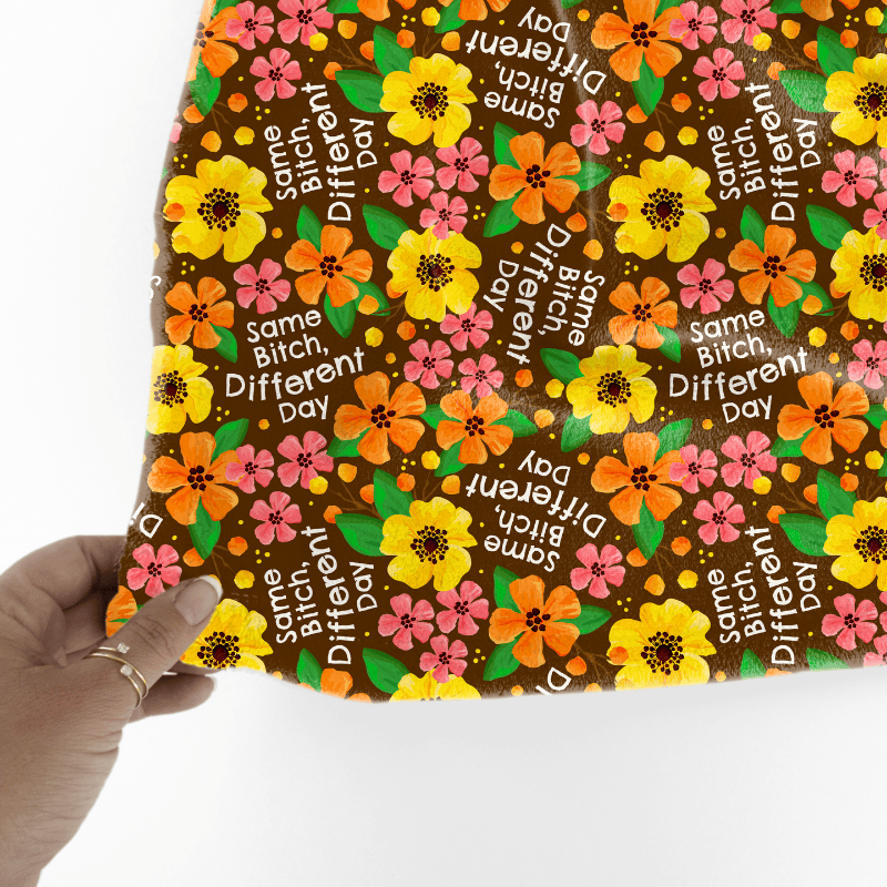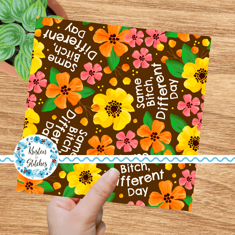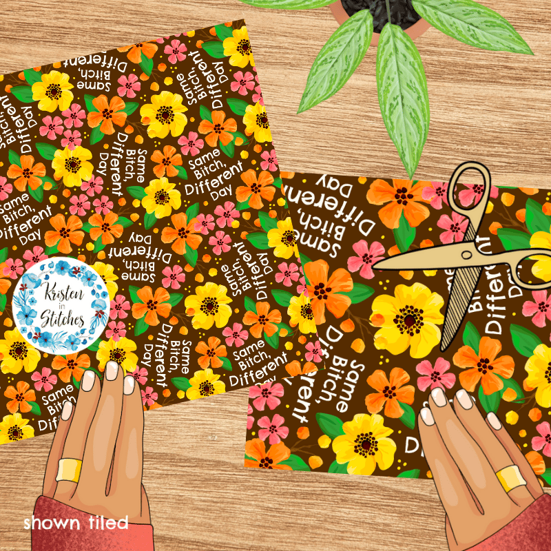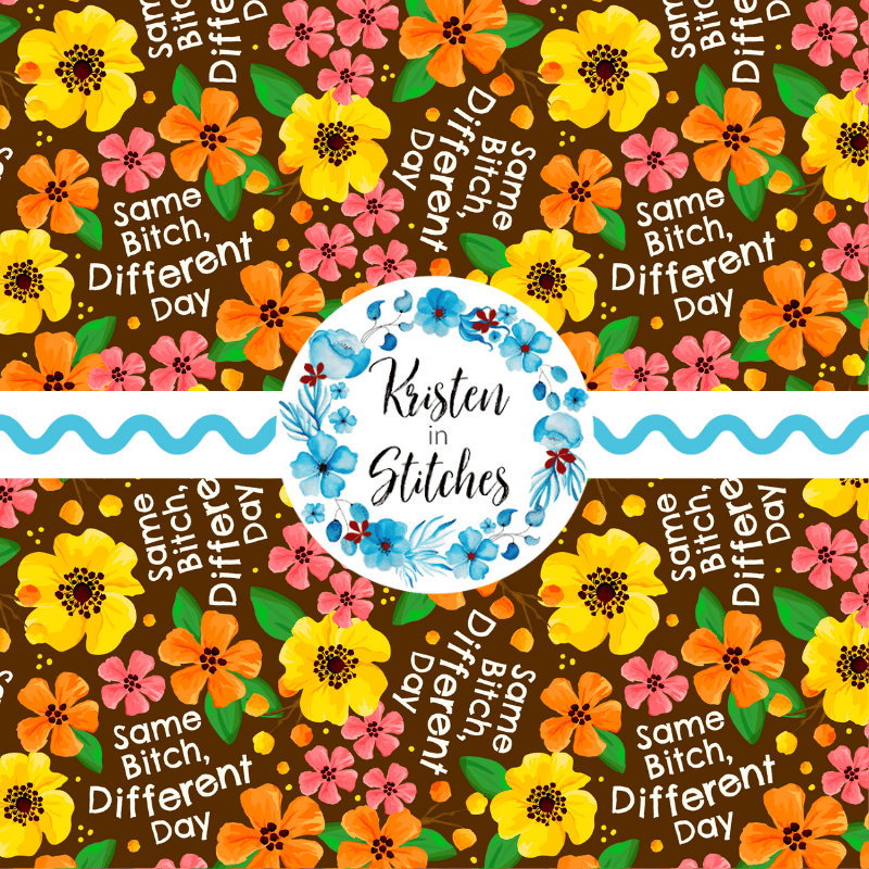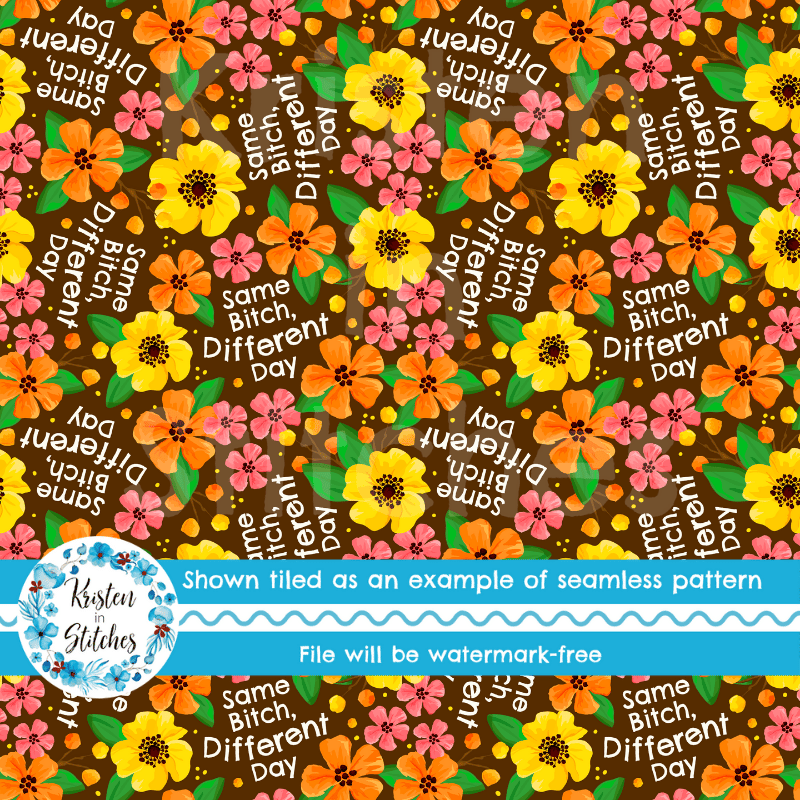Same Bitch Different Day Seamless Pattern, Sarcastic Floral, Pretty Profanities, Brown