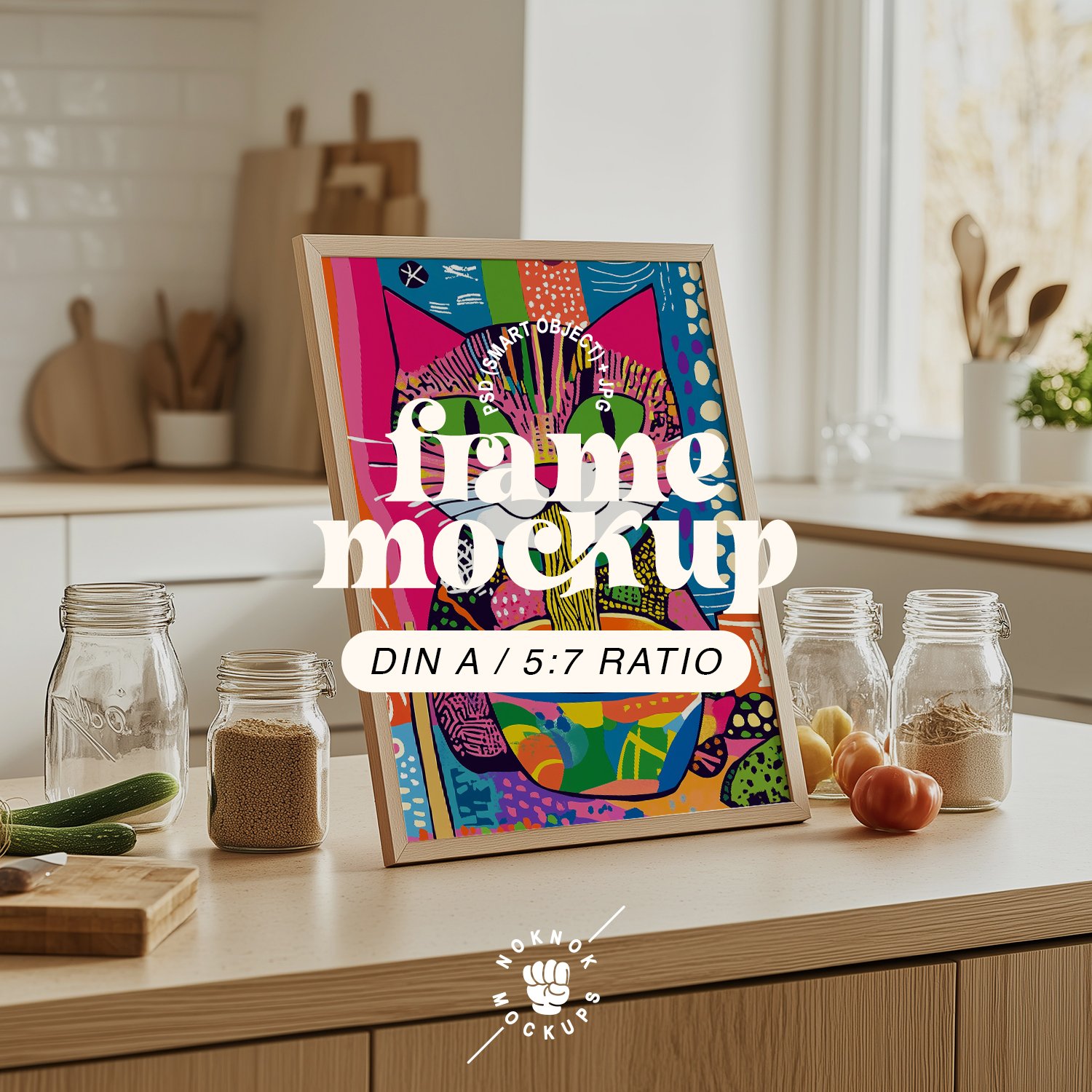 Kitchen Frame Mockup, Vertical Frame Mockup, DIN A Frame Mockup, 5:7 Ratio Frame Mockup, PSD with Smart Object + JPG