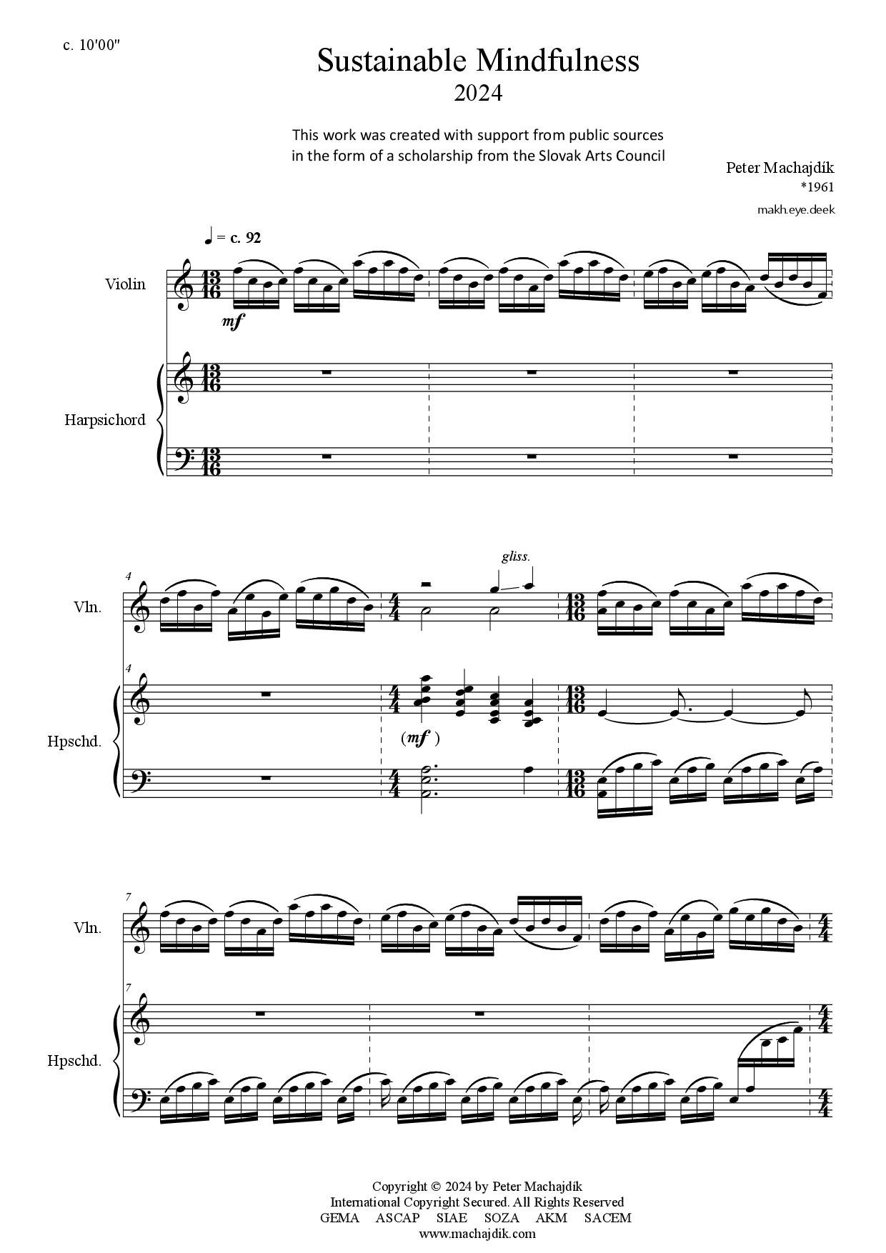 Peter Machajdík: SUSTAINABLE MINDFULNESS for violin and harpsichord (Digital Sheet Music) [score and parts]