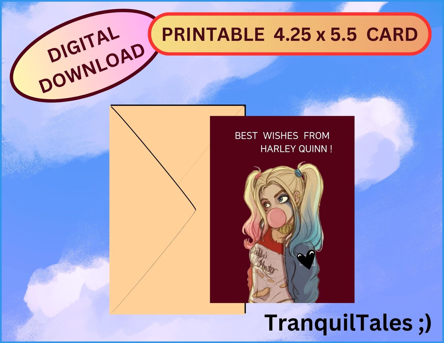 HARLEY QUINN - BIRTHDAY CARD - SUICIDE SQUAD - PRINTABLE 4.25" x 5.5" DIGITAL GREETING