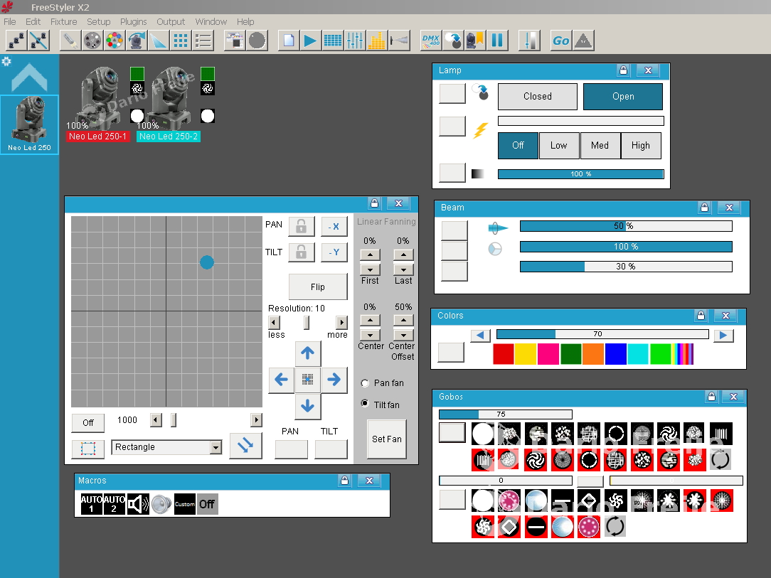 Librería para Freestyler DMX del Cabezal Móvil "Neo Led 250" de American Pro.