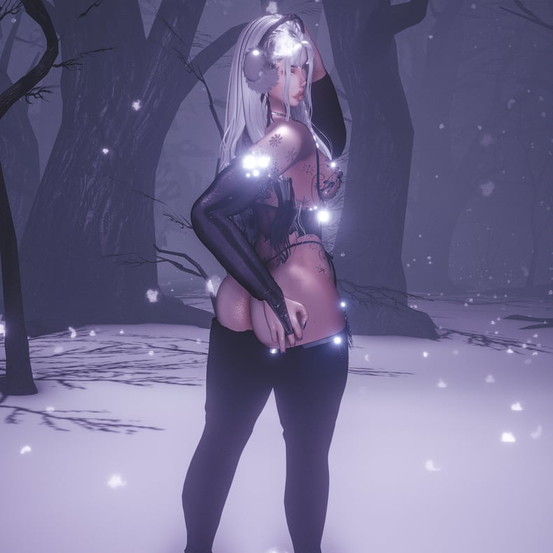 clothing: basic shirt/sweats - unavailable anymore i believe - sweat set - helper set - rein v3 - iceice set - belt heels - knit sweater - necklace - torn stockings - rings - heels - hoodie - wings - puppy set - necklace stack - neck lights (advent day 7) - outfit (advent day 4) - body lights (advent day 2) - shorts - pasties and belly ring