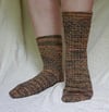 The rib pattern in these socks makes for a pair of very squishy socks! The ribbing pattern is easy to work, but means it's a less boring knit than just ‘plain rib’. They have a good bit of stretch as well. Knit cuff-down with a sole side gusset, directions for two sizes are included.