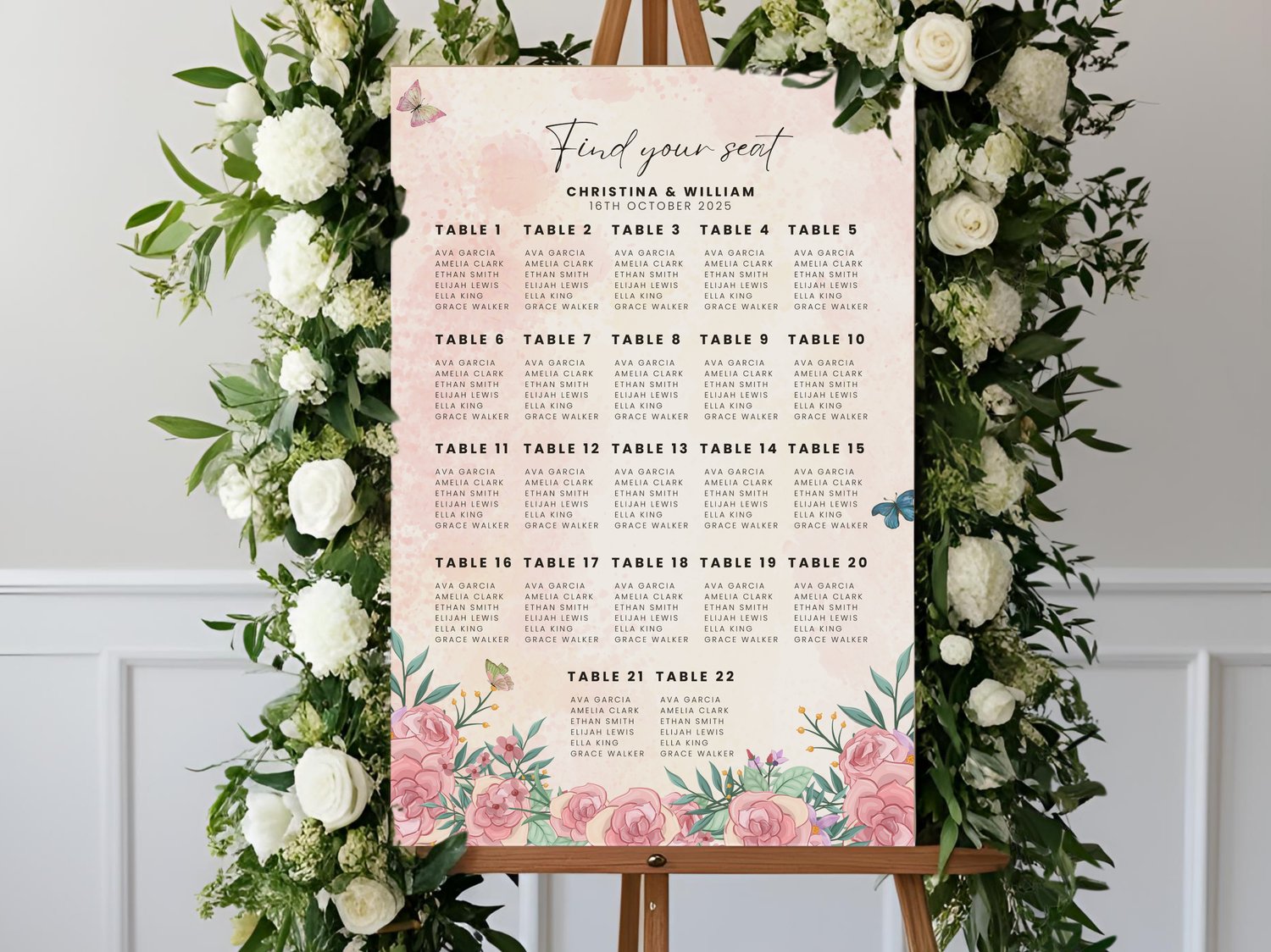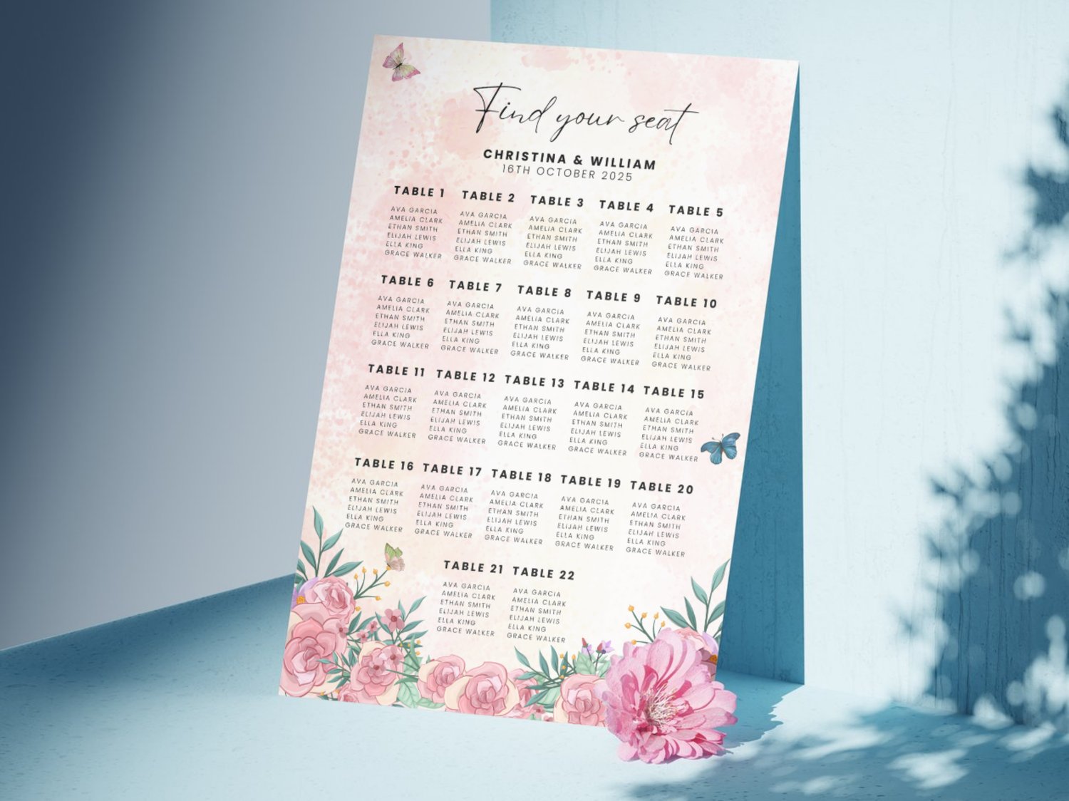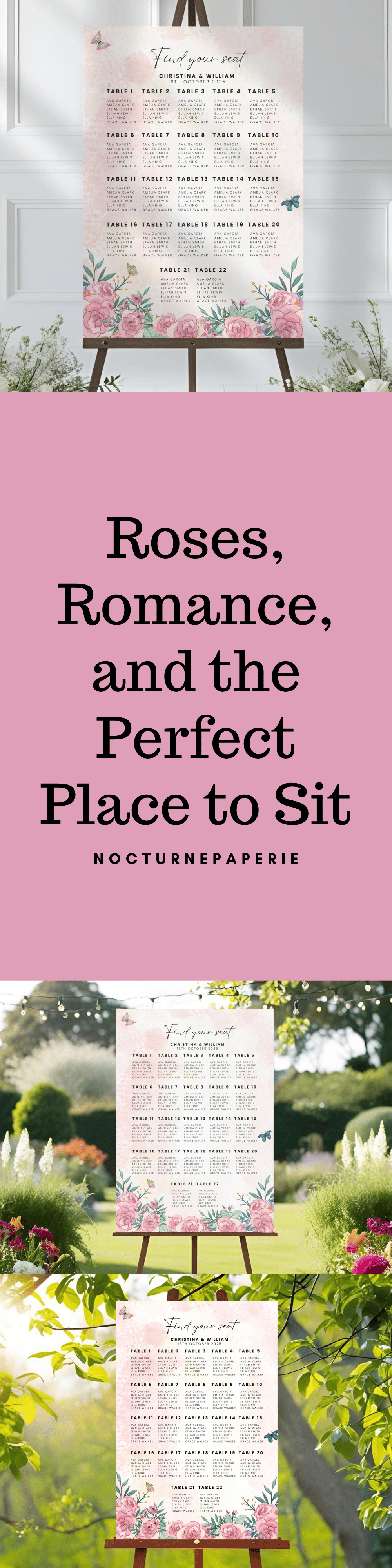 Bring a touch of romance to your reception with this spring wedding seating chart featuring a delicate rose theme. This editable Canva template serves as a beautiful and functional guide for guest seating arrangements. It’s part of our seasonal collection on NocturnePaperie—explore other seasons like Winter, Summer, and Autumn.
