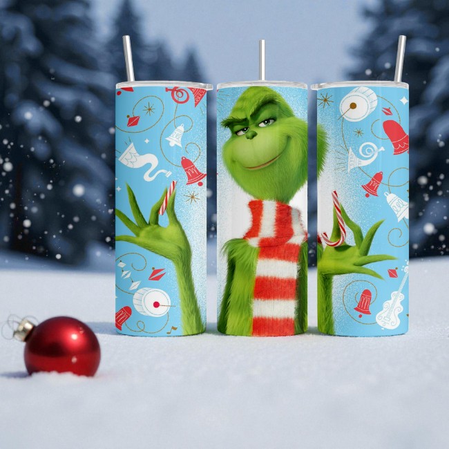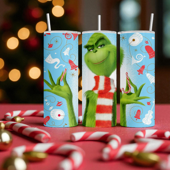🎄 Grinch & Candy Cane Mischief – 20oz Skinny Tumbler